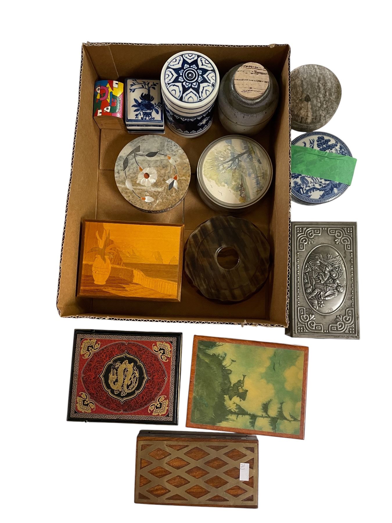 Group - Misc. jewelry boxes, music box, ashtray, matches, etc.