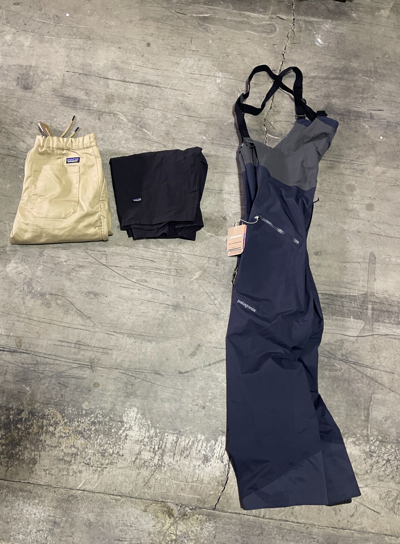 Group lot - Patagonia Pants - Approx Value : $540 - Snow pants (S) Mens w/tags - Black Pants (8) Womens w/tags - Tan Pants (M) Mens w/tags