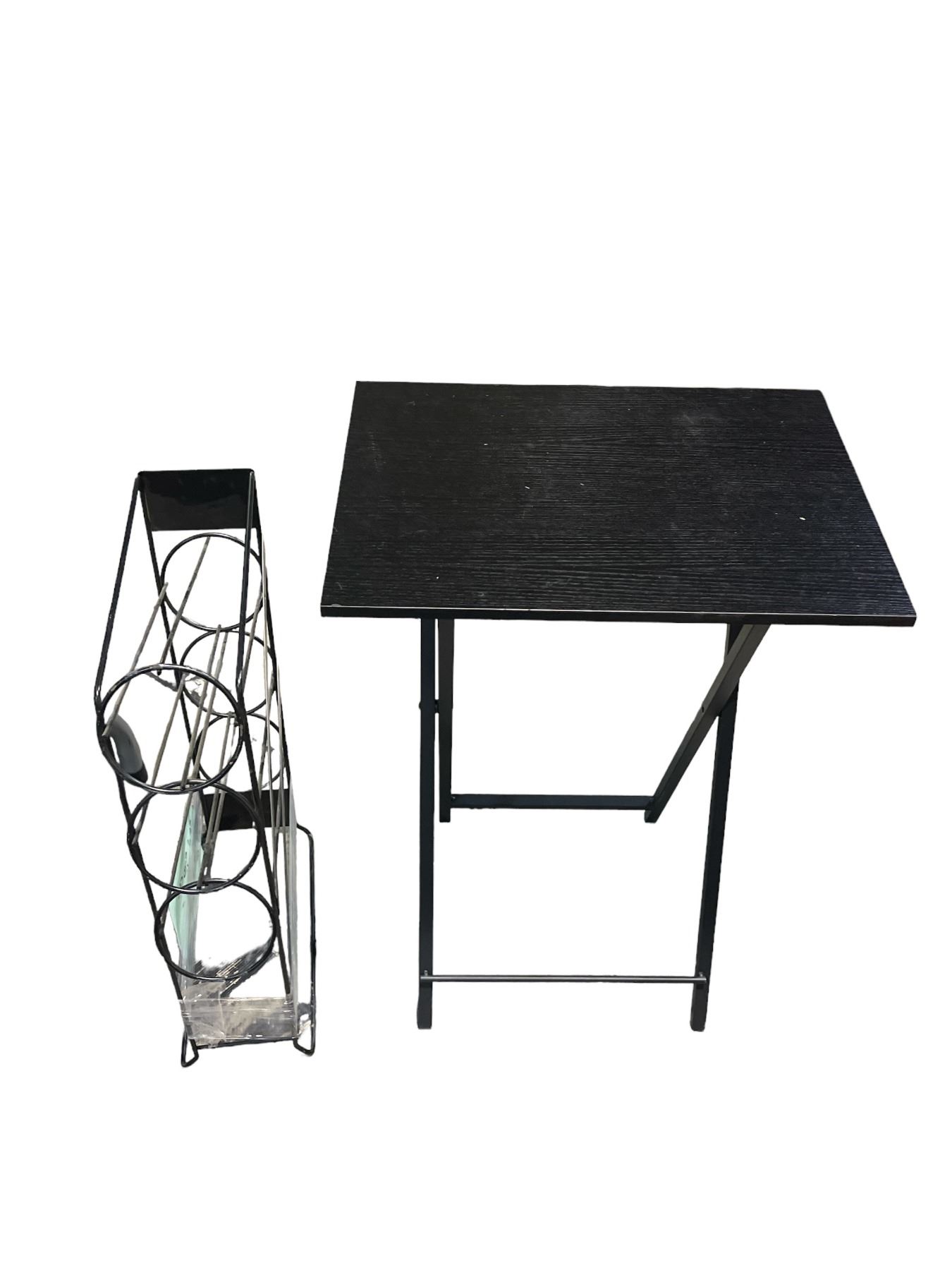 Group lot - Wall mount coffee cup holder + small black end table (14x19x26")