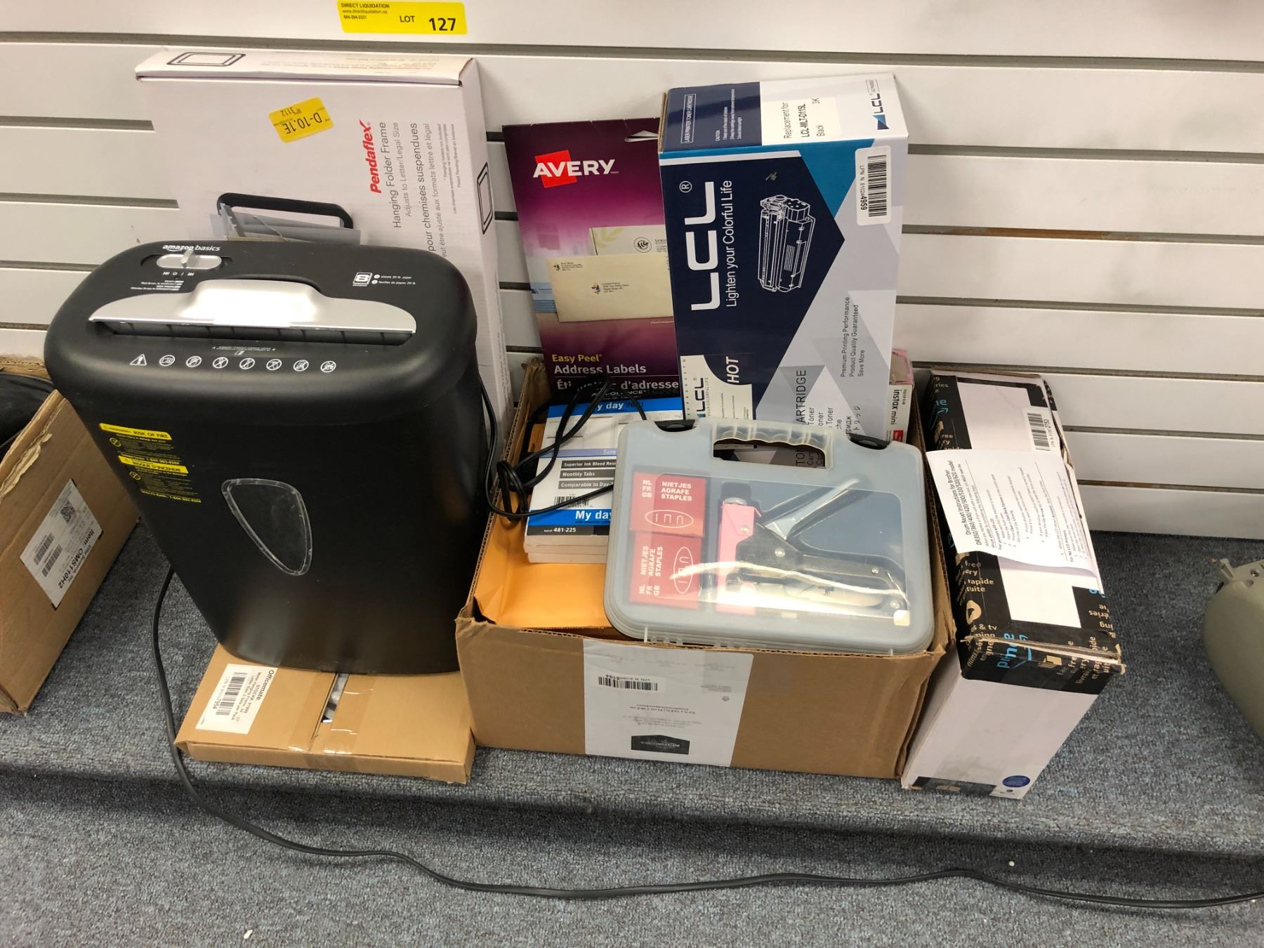 Group lot of Office Items - including paper schreder, labels, toner cartridges, stapler,