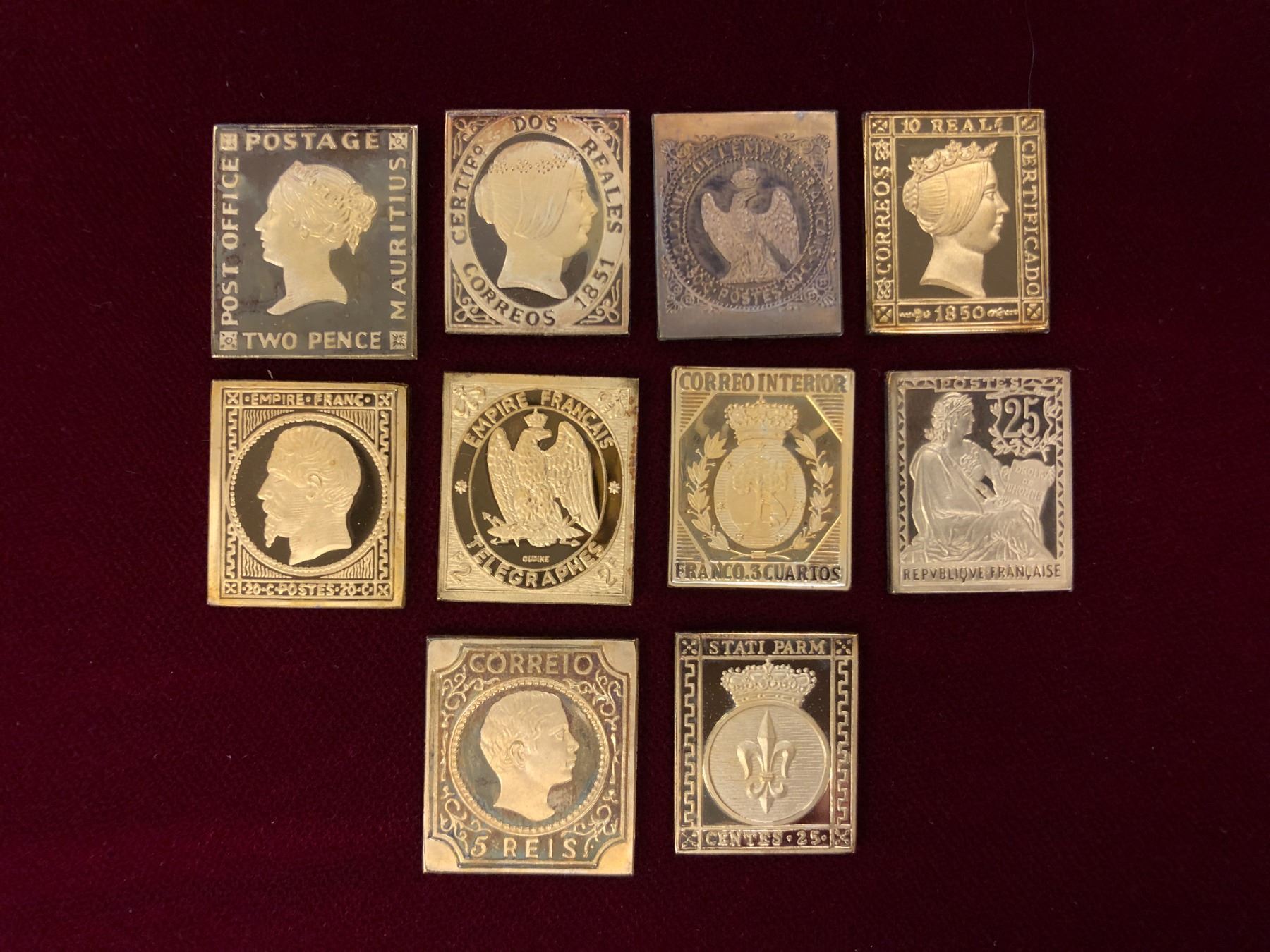 Group of 10 Silver Vintage Collectable Posted Stamps