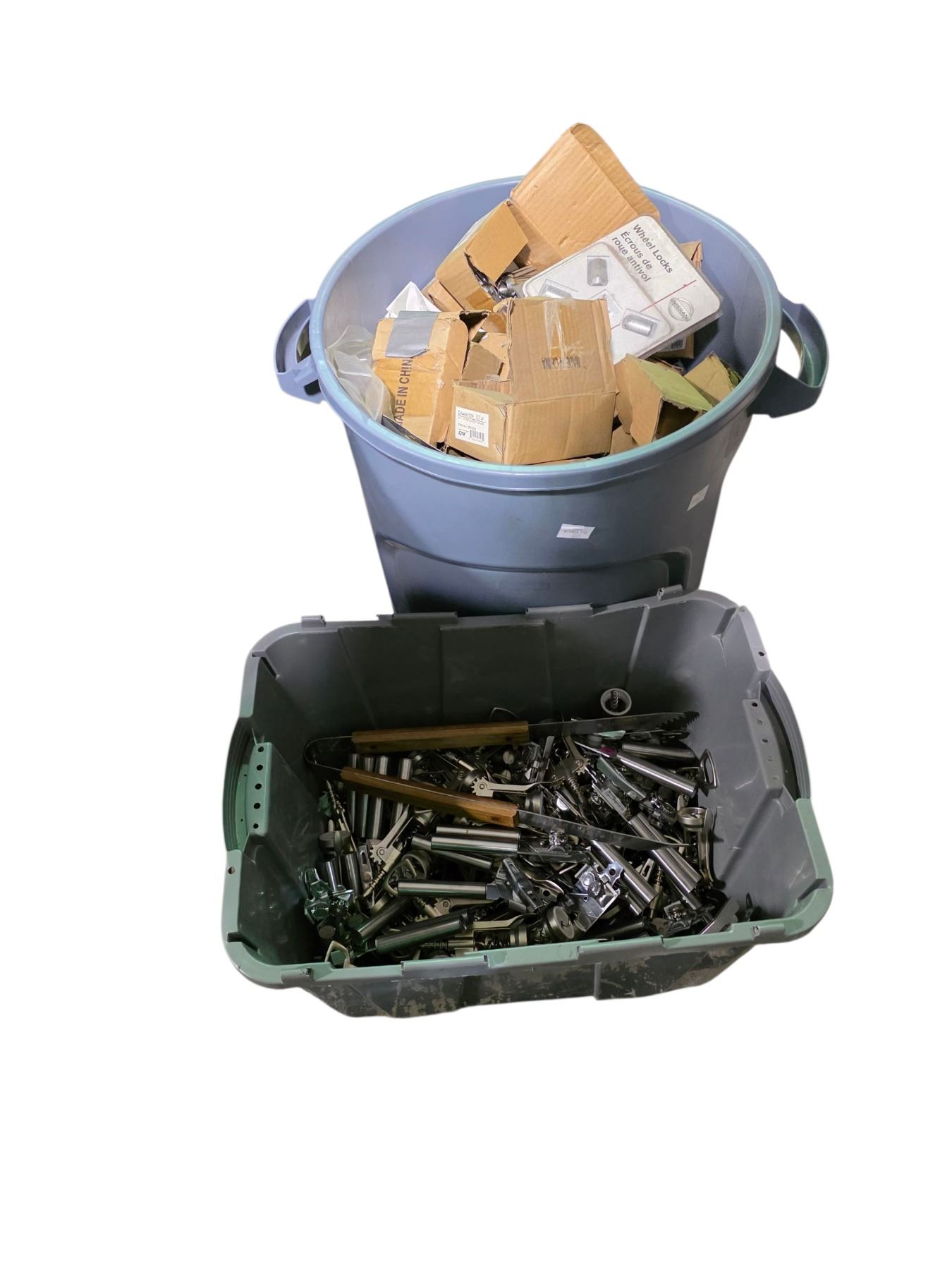 Group of 2 Bins of Car Components - includes assorted sizes NEW Splines & Wheel Locks