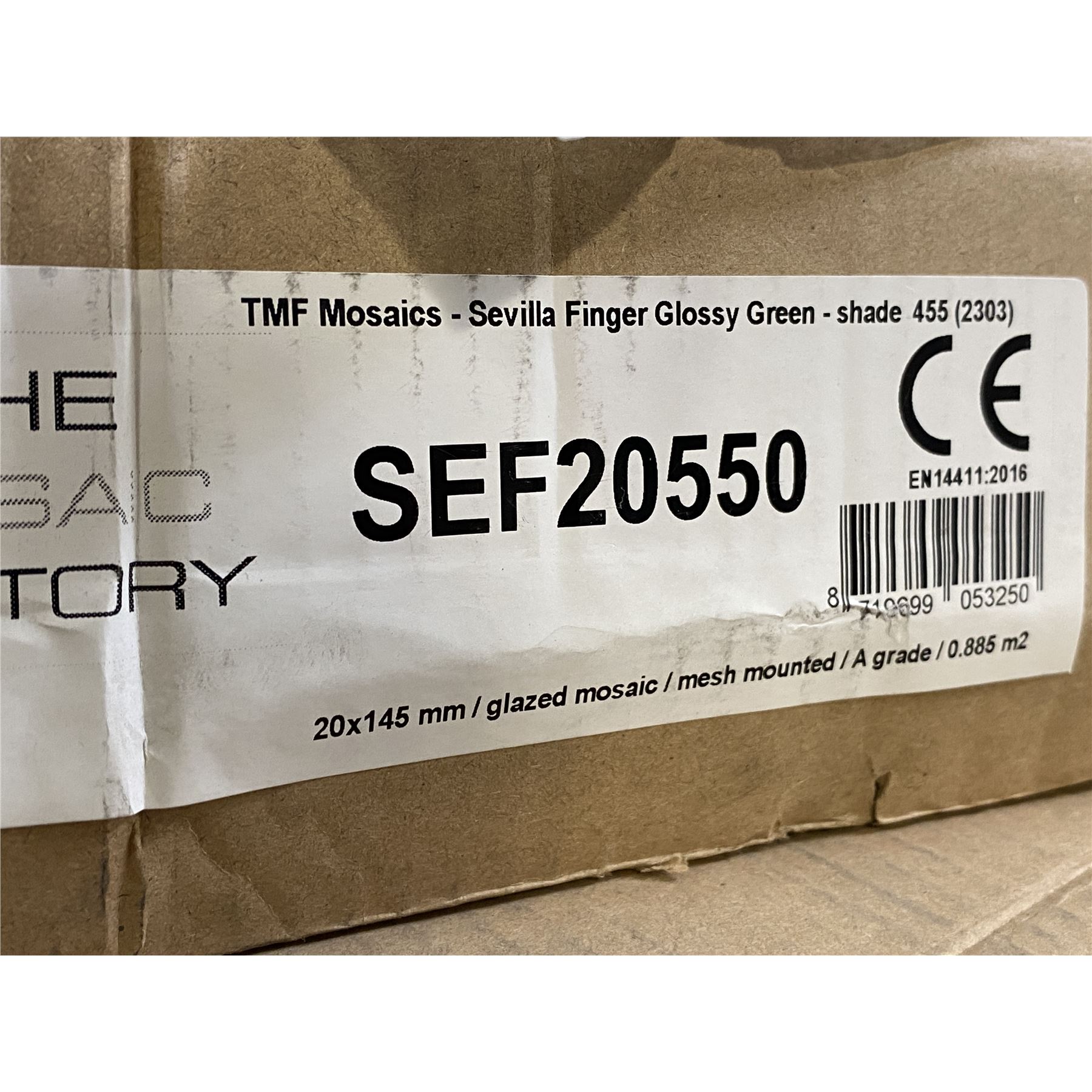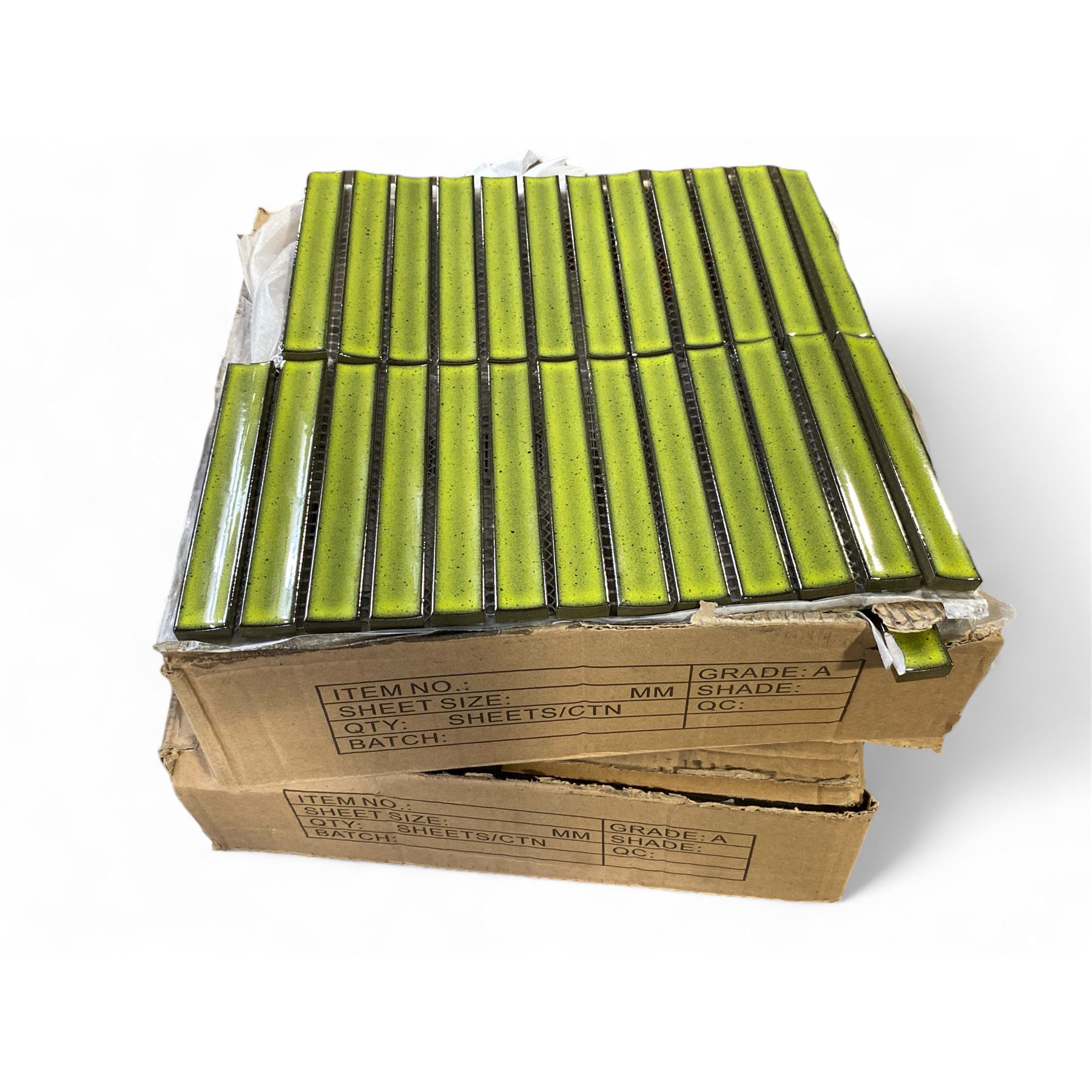 Group of 2 Boxes Sevilla Glossy Green Porcelain Mosaic Tiles - 20x145mm, 10 sheets per box (0.89m2)