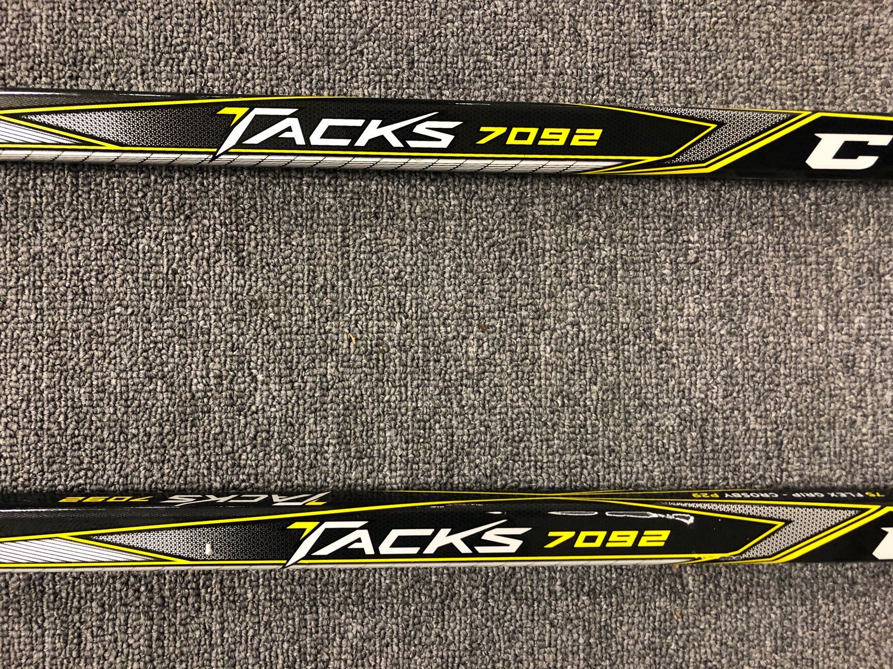 Group of 2 CCM Tacks 7092 ice hockey left handed sticks - includes 85 Flex Grip - Crosby P29 & 75 Flex Grip - Crosby P29