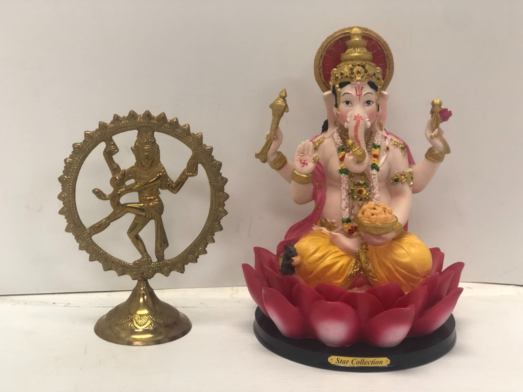 Group of 2 Indian decorative sculptures - Indian Ganesha statue & Brass Natraj statue
