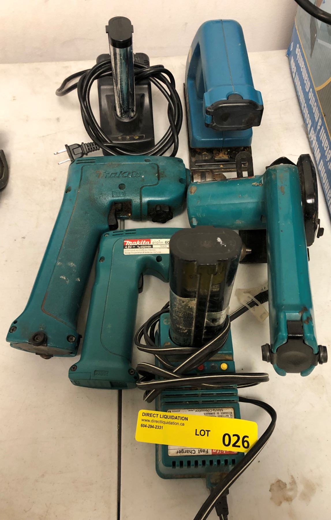 Group of 2 Makita power drills w/ battery charger/ Makita 85mm cordless circular saw & Ryobi cordles