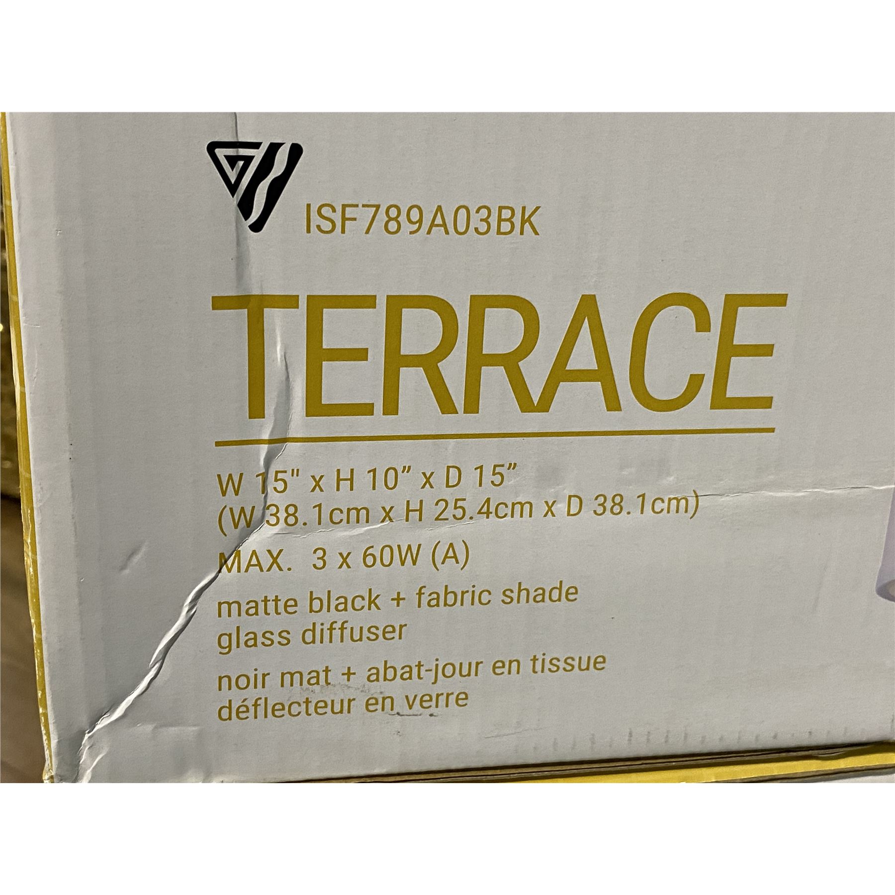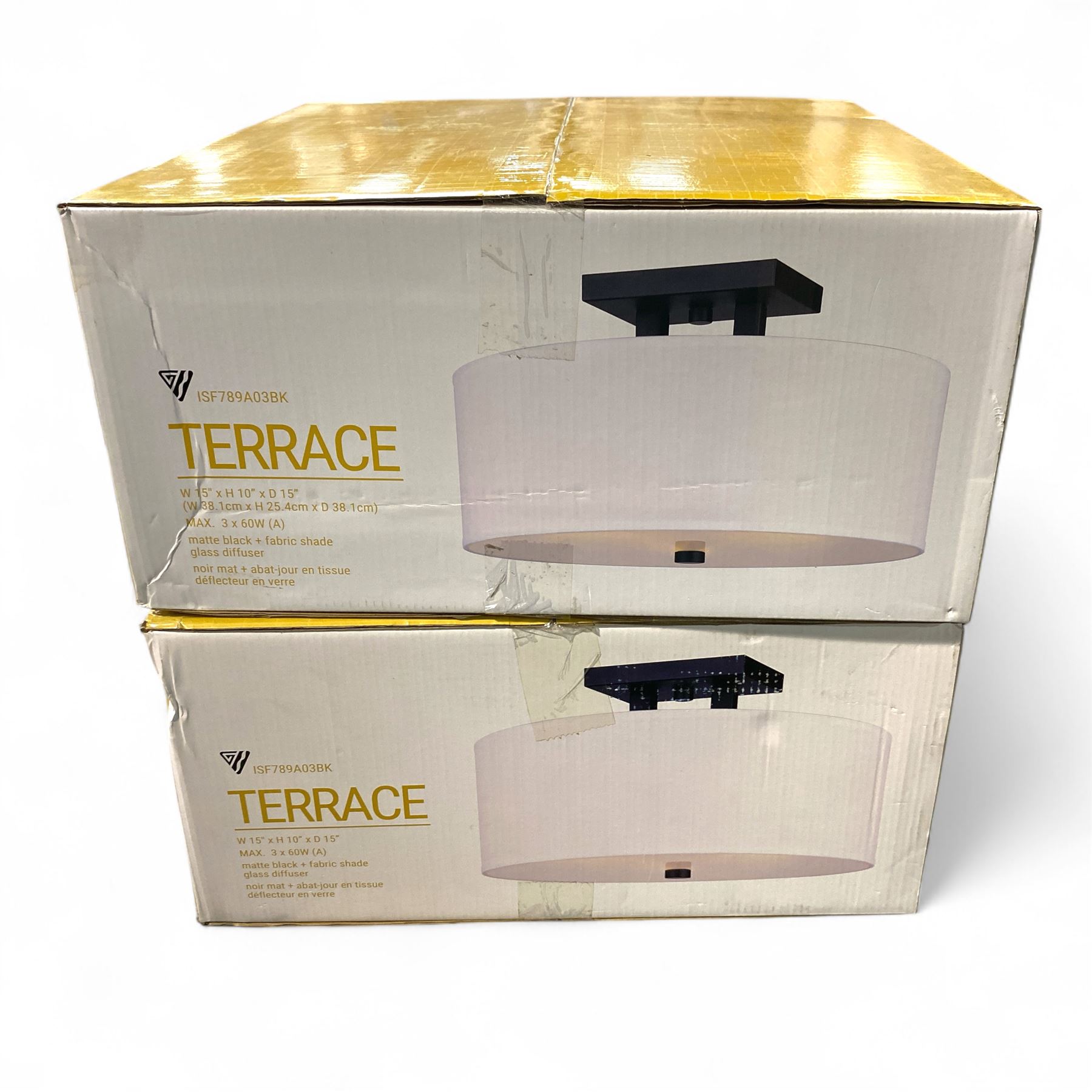 Group of 2 NEW Terrace White Fabric Shade Black Finished Mounts - Retail Value $249.100