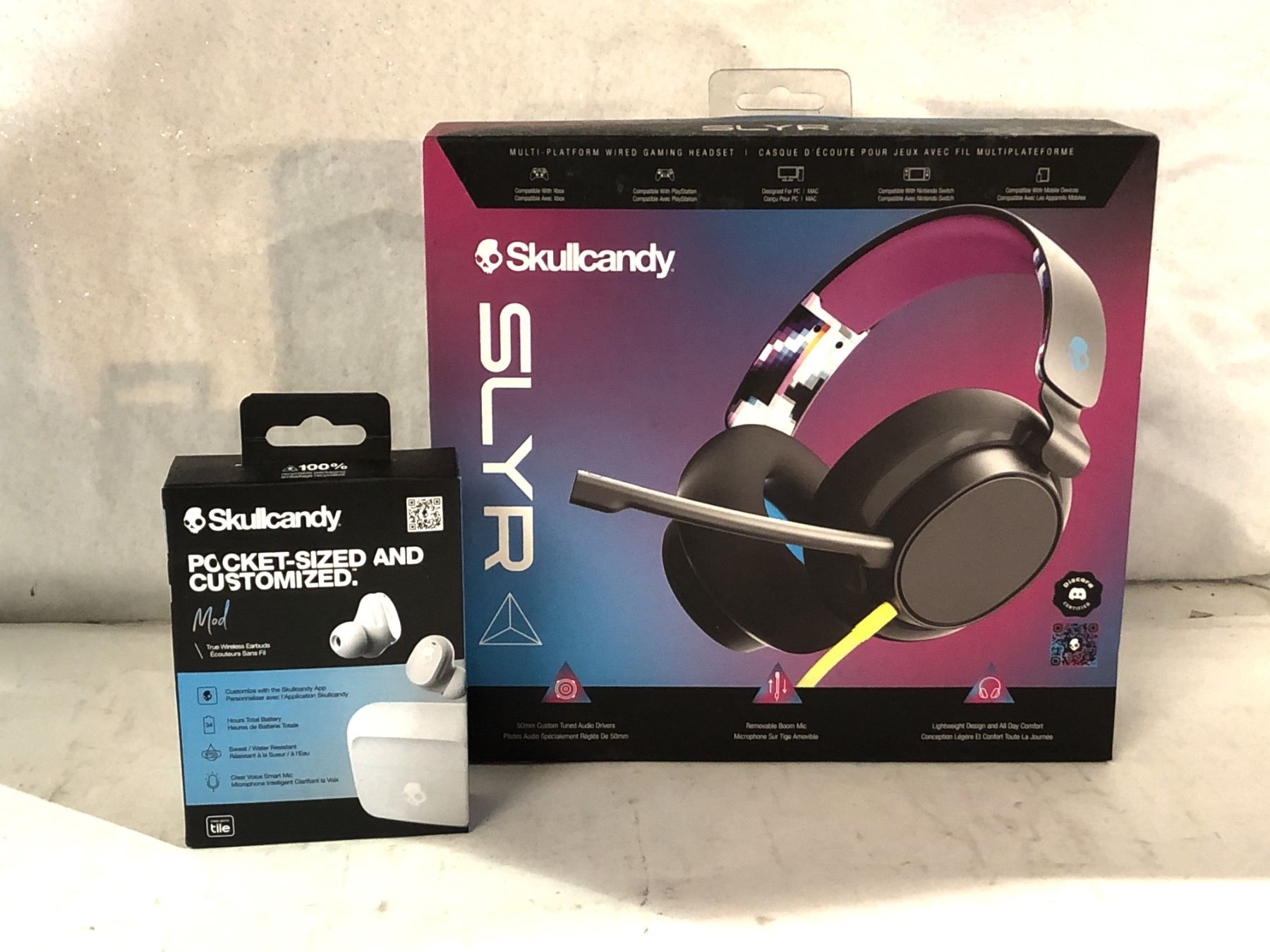 Group of 2 Skullcandy Mod earbuds & wired SLYR gaming headset