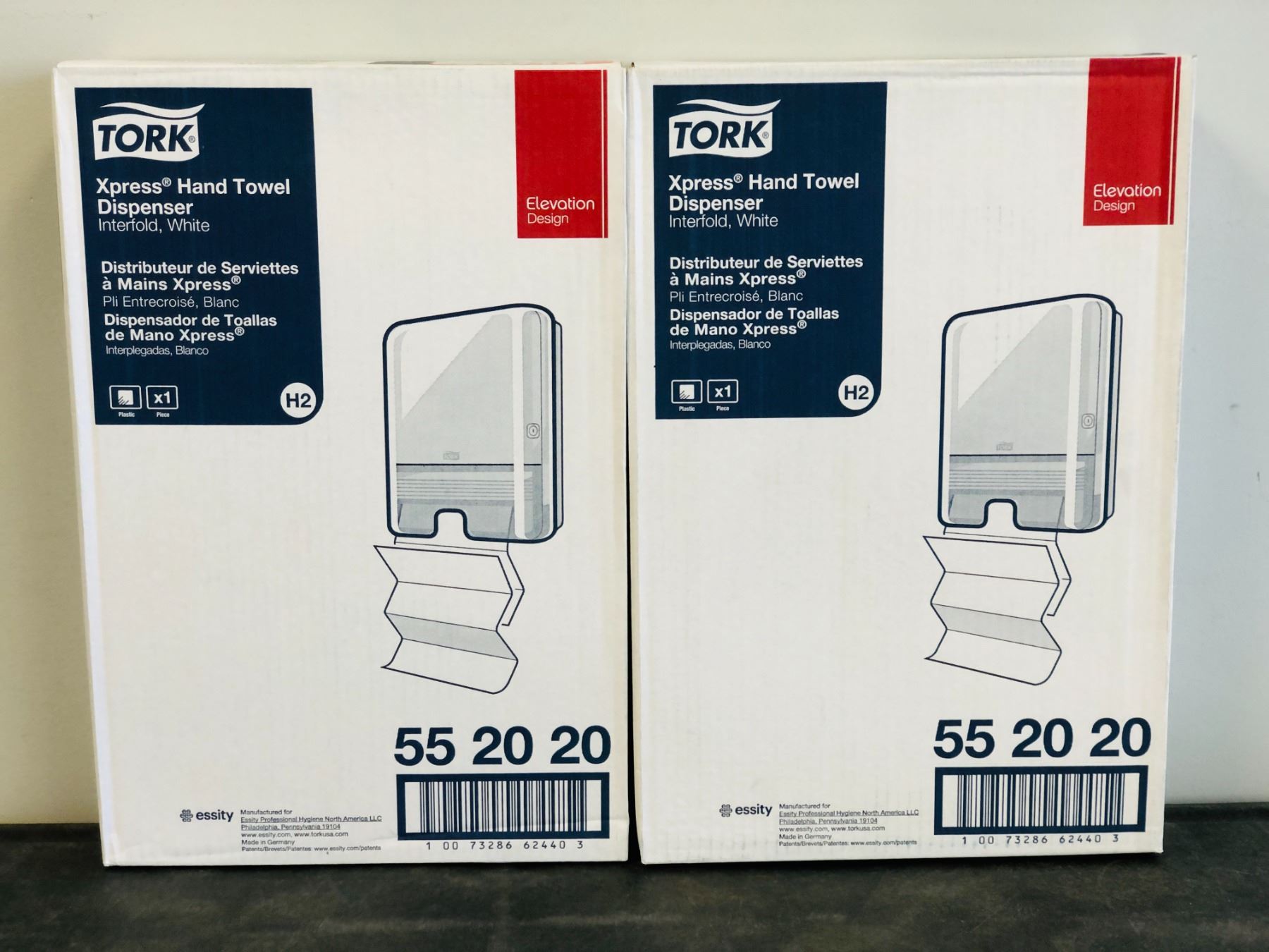 Group of 2 Tork Xpress hand towel dispenser interfold, white (new in box)