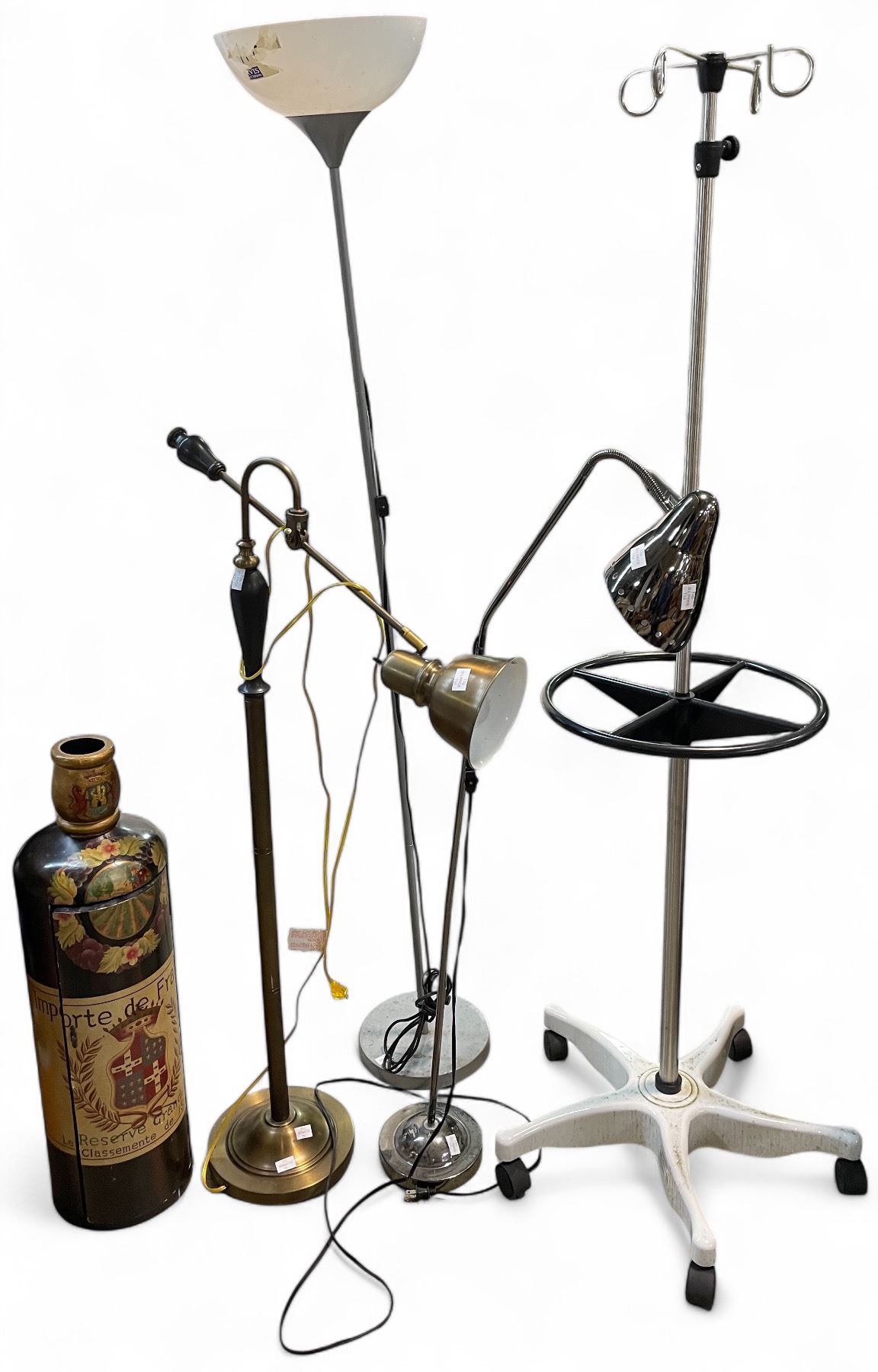 Group of 2 Vintage Floor Lamps & Decorative Wine Stand storage