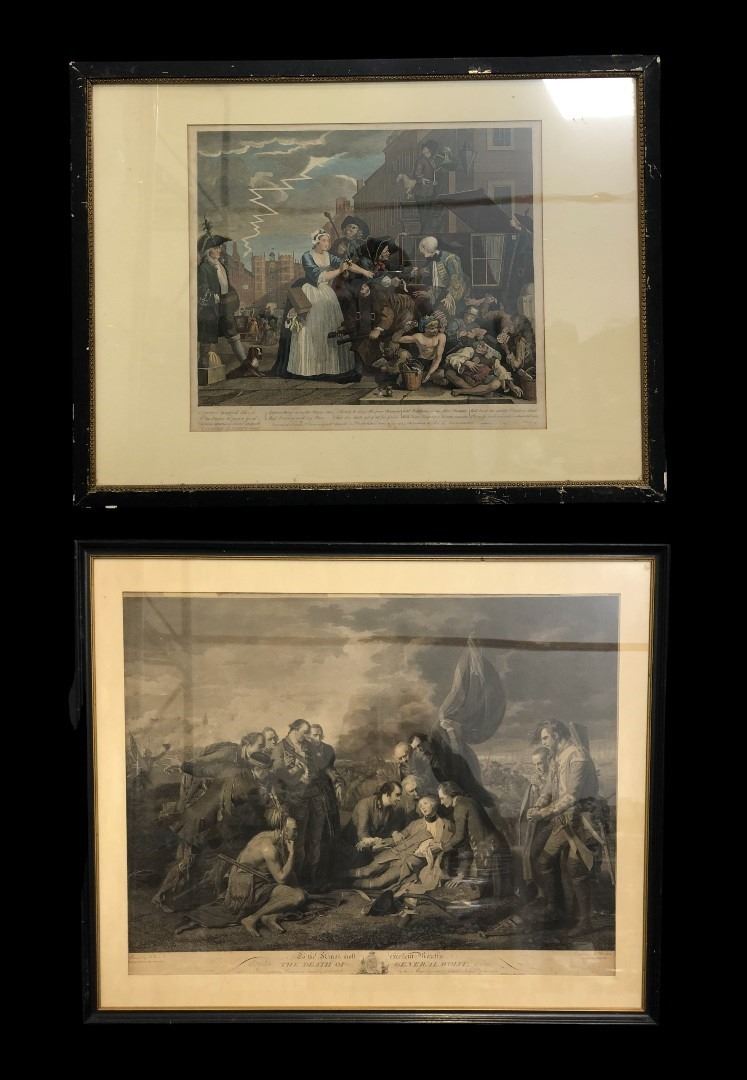 Group of 2 assorted framed paintings - The death of General Wolfe ( approx 27 1/2" x 22 1/2")