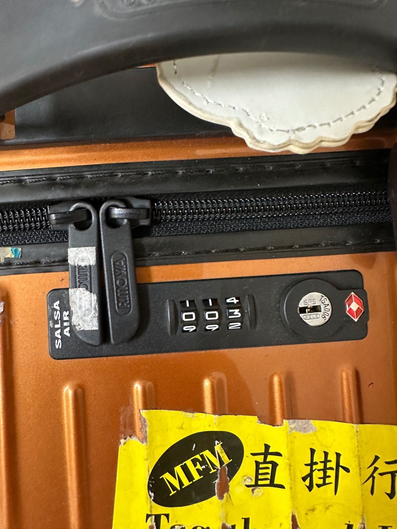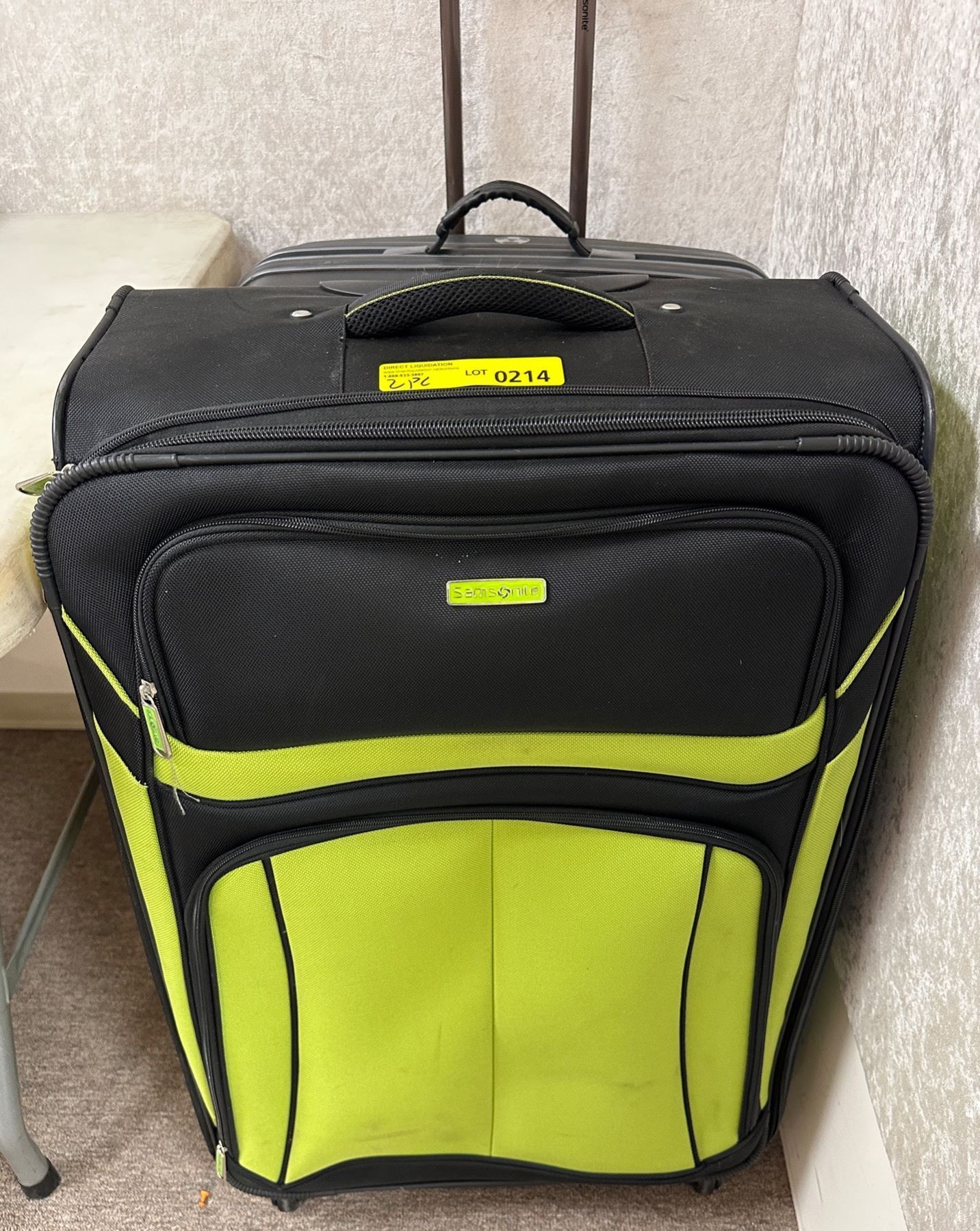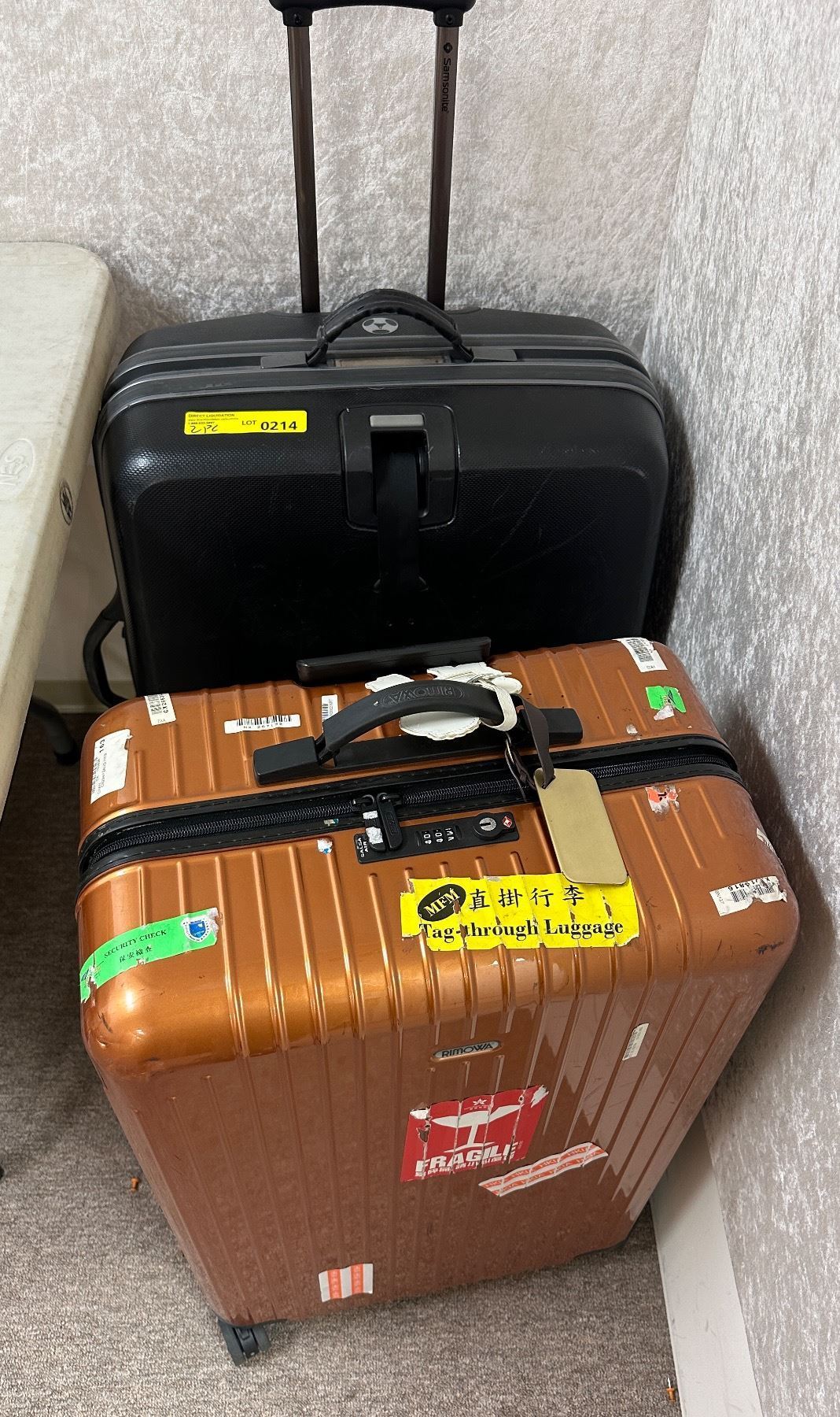 Group of 2 assorted travel luggage bags (orange locked - pin unknown)