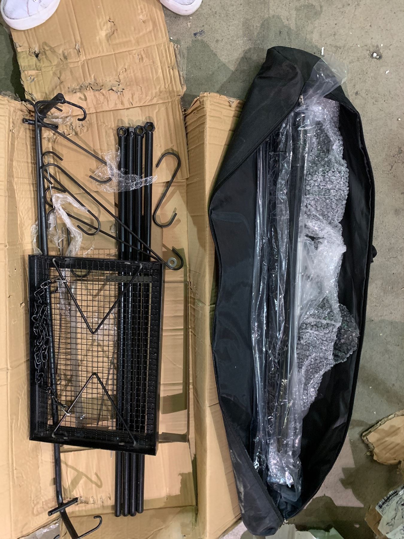 Group of 2 metal items - metal hanging stand and a screen holder w/2 stands