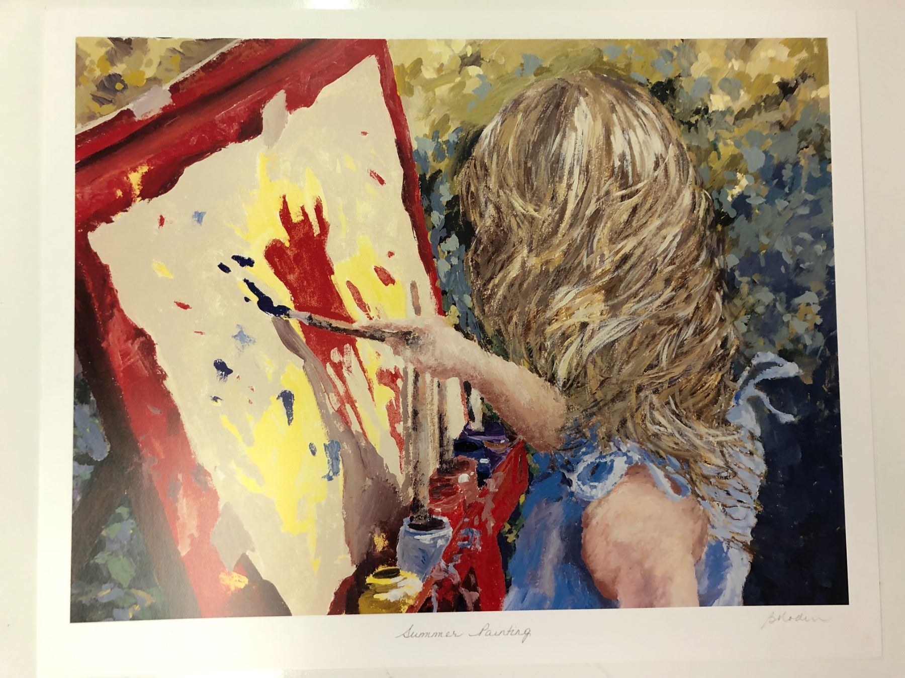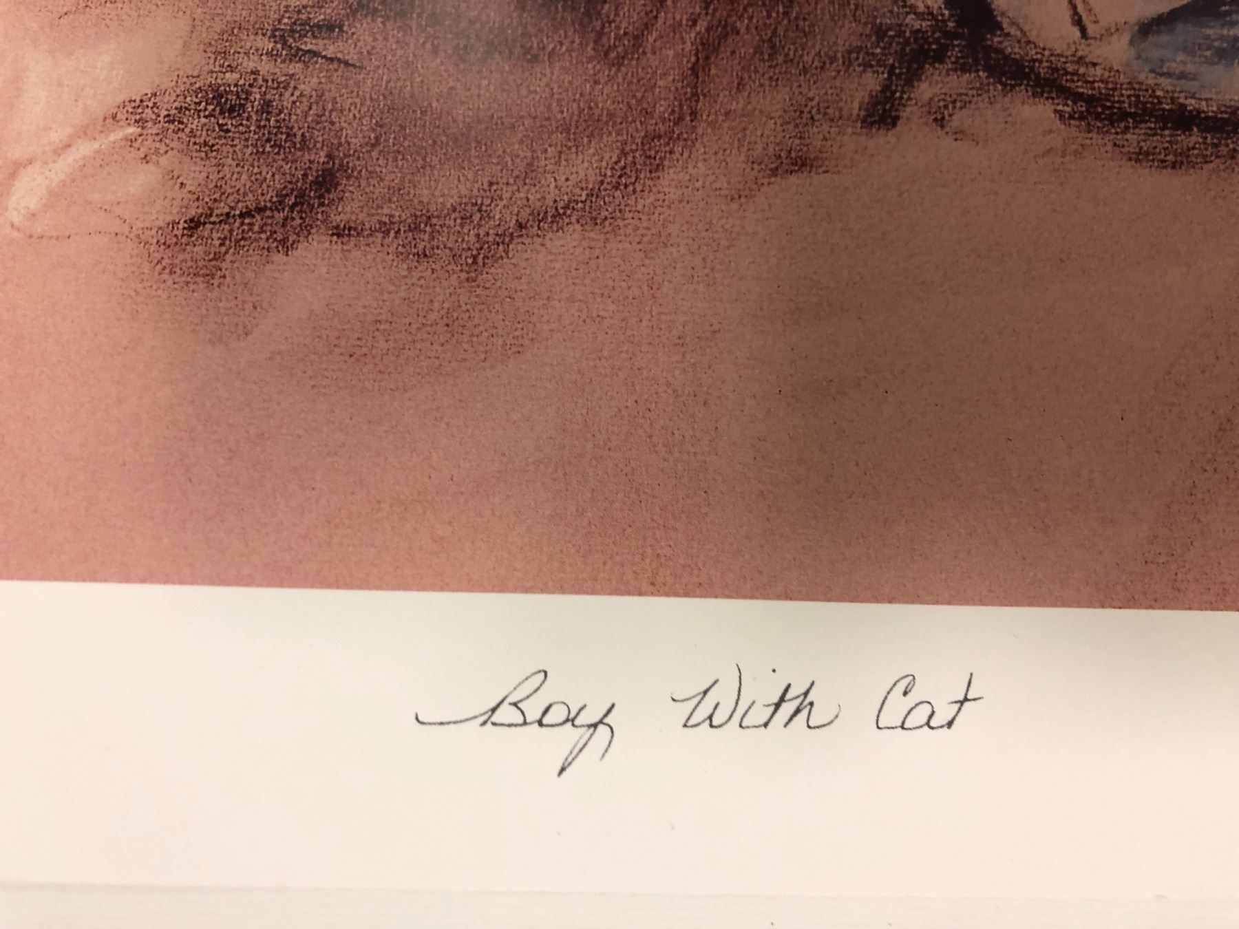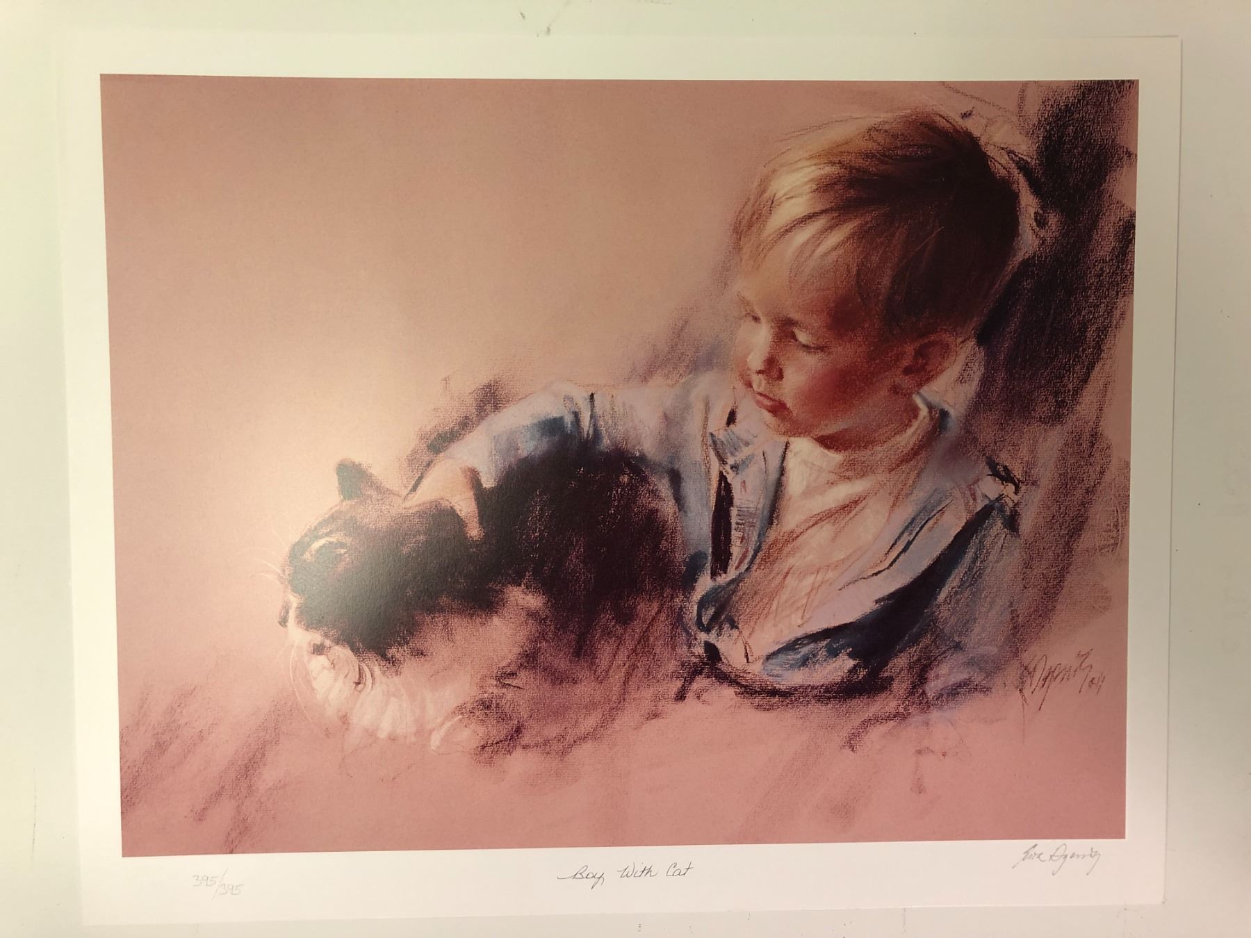 Group of 2 original limited edition painting prints signed by artists - "Boy With Cat" #395/395 & "S