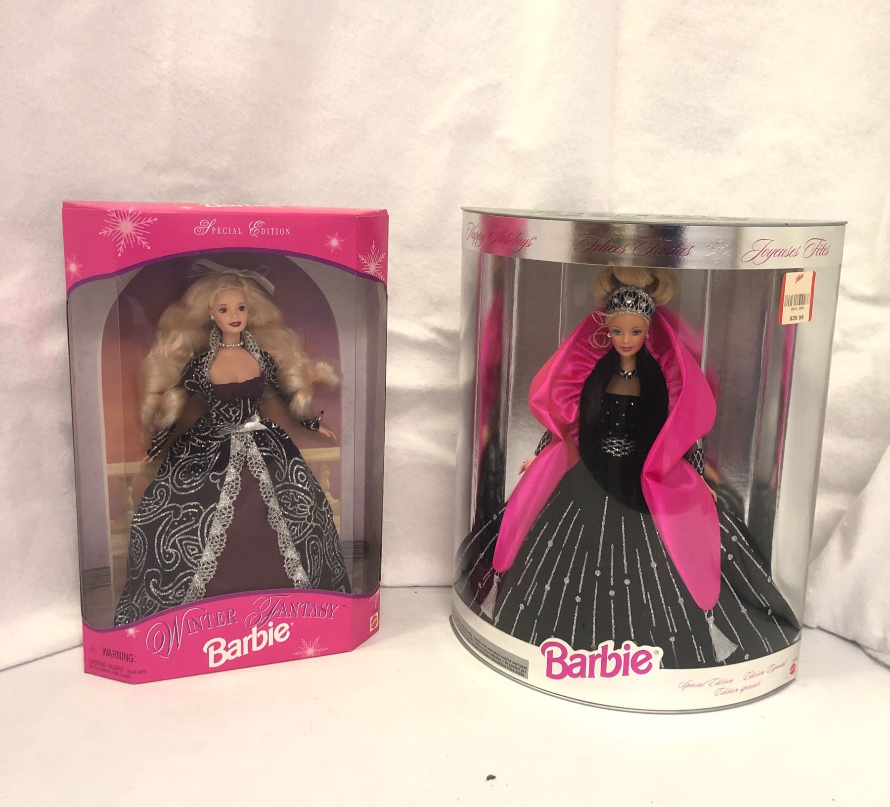 Group of 2 special edition vintage Barbie dolls - includes 1998 happy holidays Barbie (BNIB) & 1996 winter fantasy Barbie (BNIB)