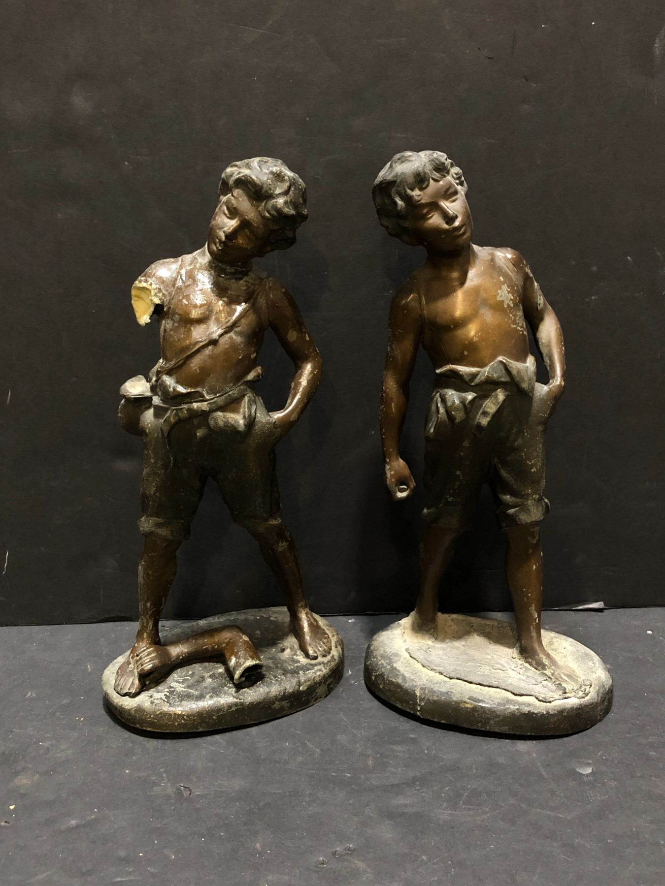 Group of 2 "young boy the whistler" statues (one has a broken arm)