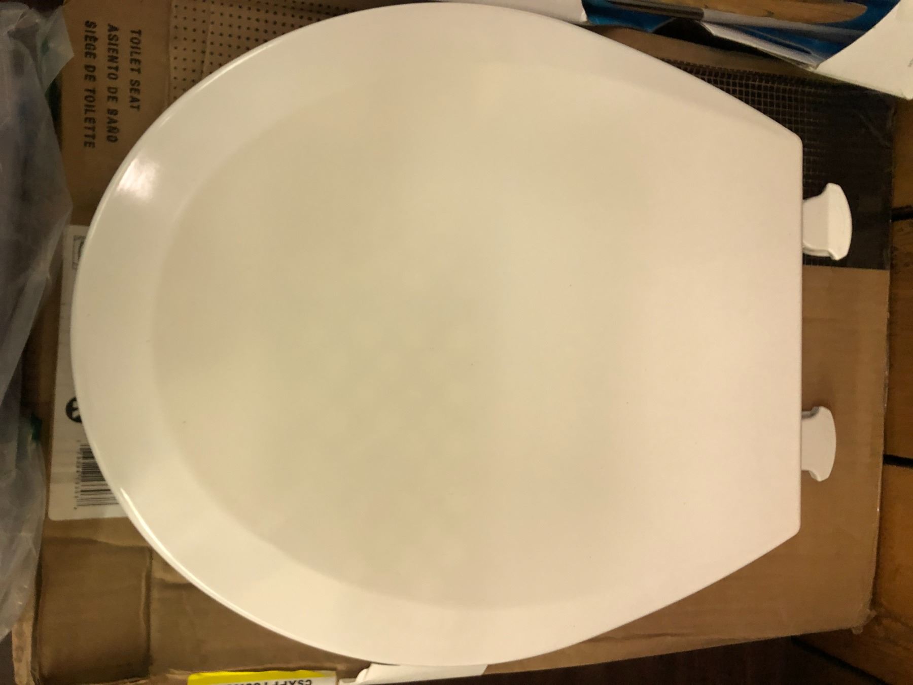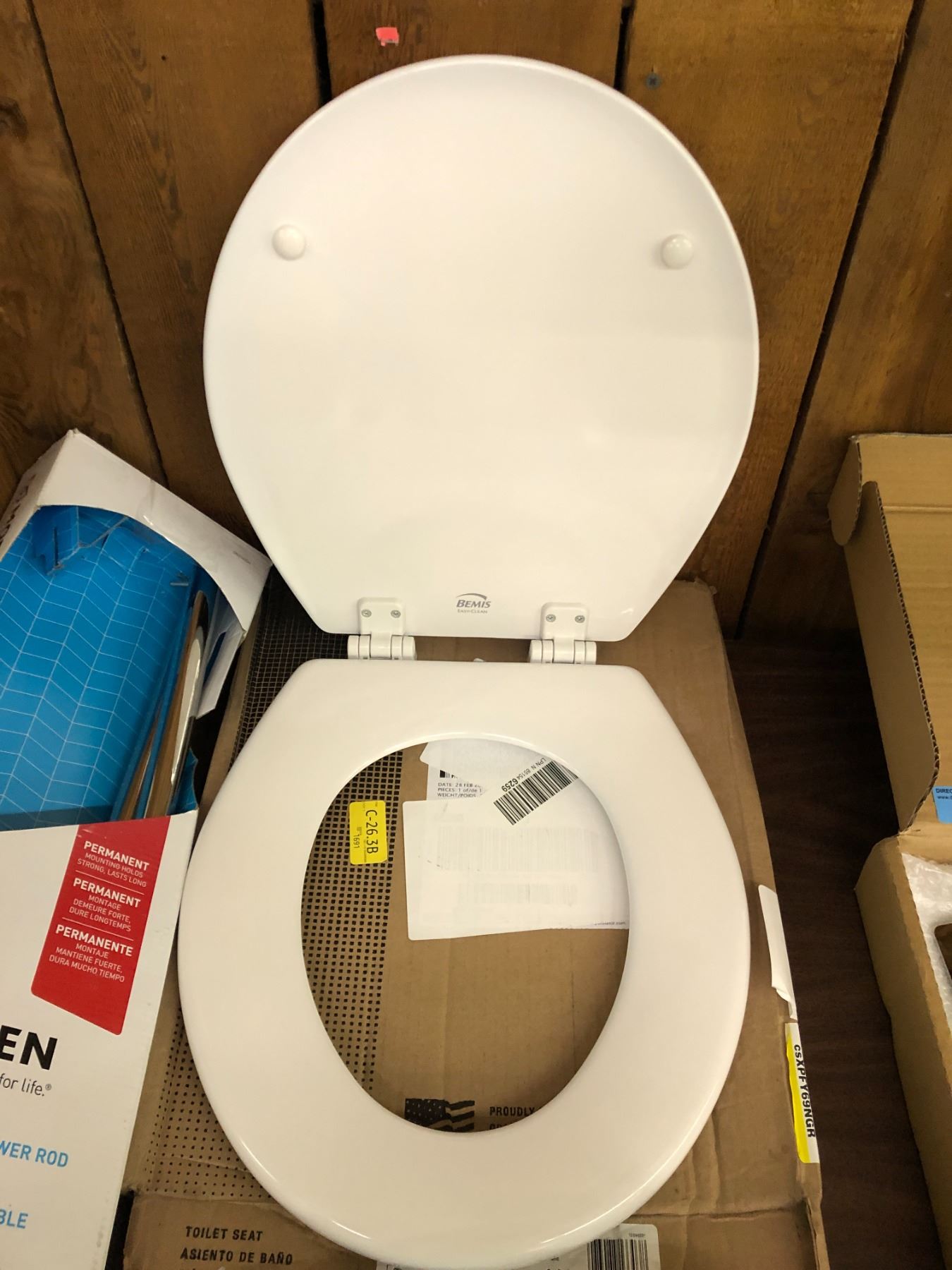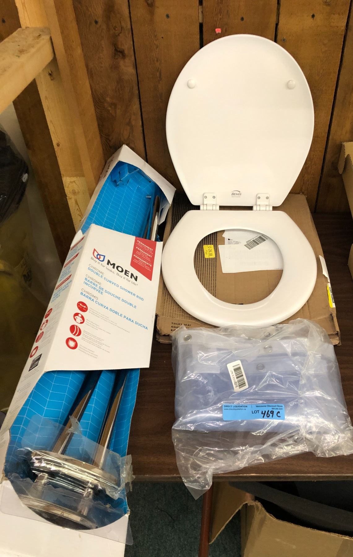 Group of 3 Bathroom Items - Toilet Seat / Curved Shower Rod & Clear Shower Curtain