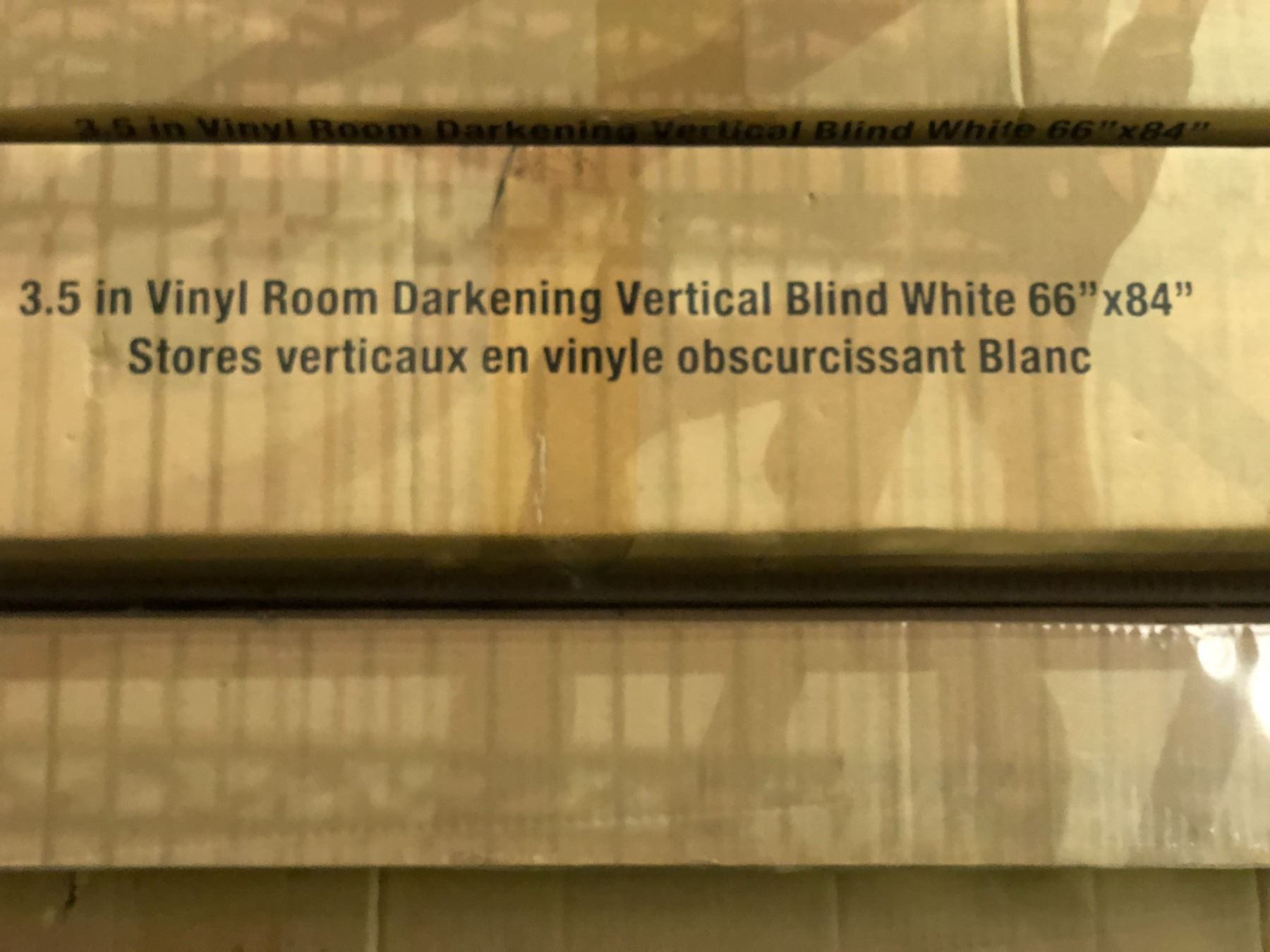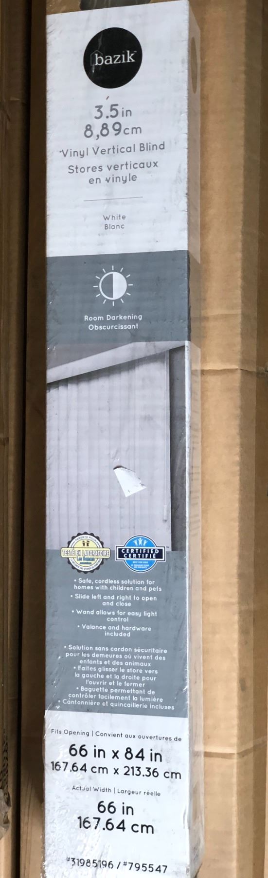 Group of 3 Bazik 3.5 vinyl room darkening vertical blind white (approx 66" x 84")