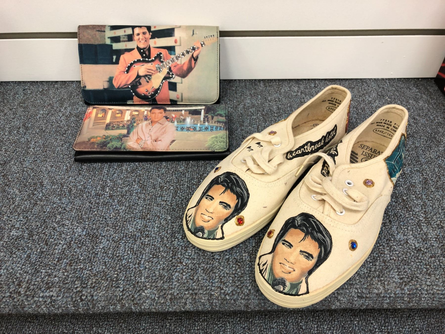 Group of 3 Elvis Presley collectible items - 2 ladies pocket books & 1 pair of Separate Issue size 8 shoes