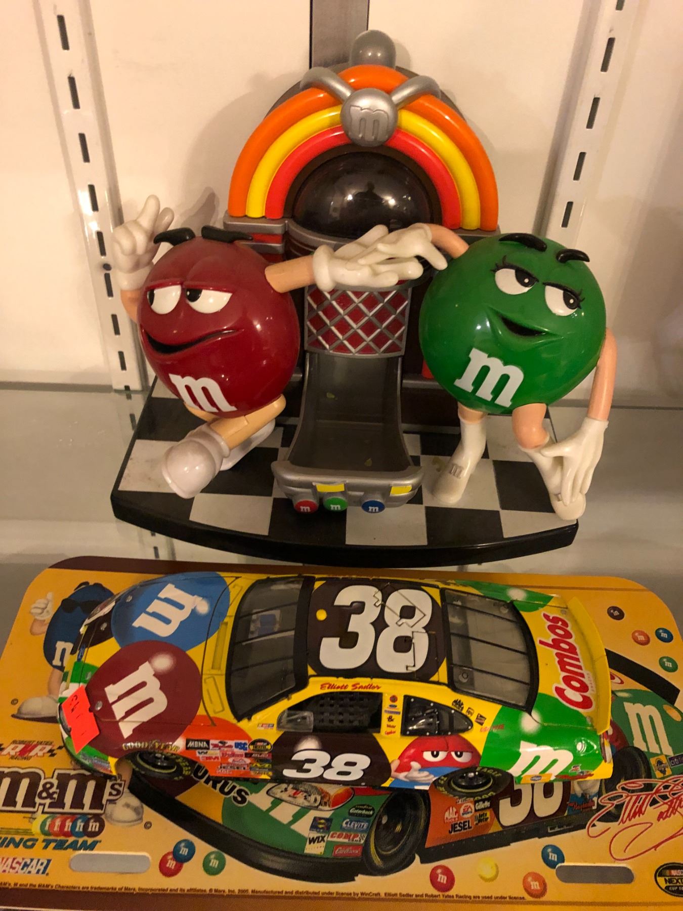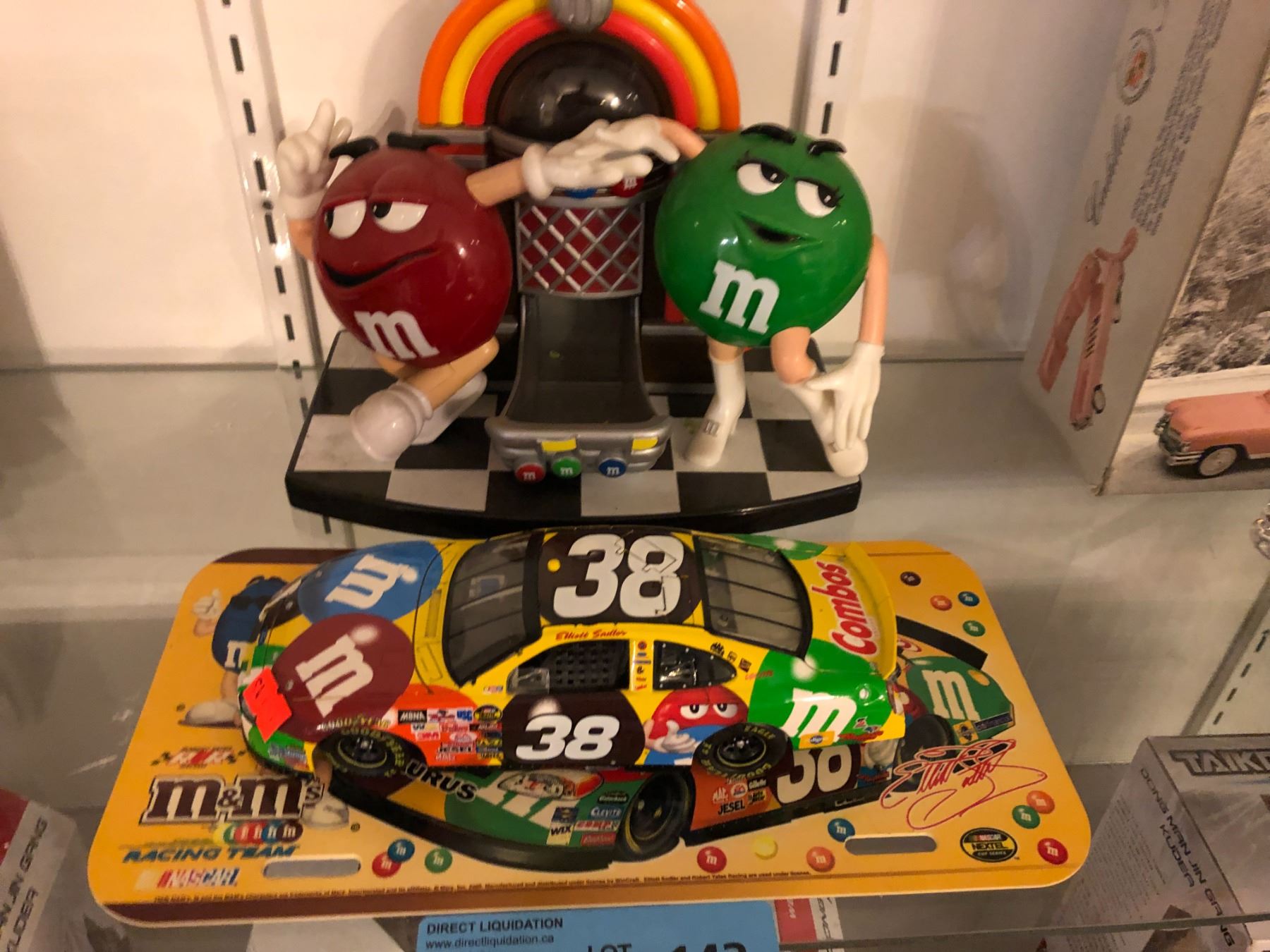 Group of 3 M&M's collectible items - die cast metal #38 Nascar/ M&M #38 Nascar license plate & candy dispenser