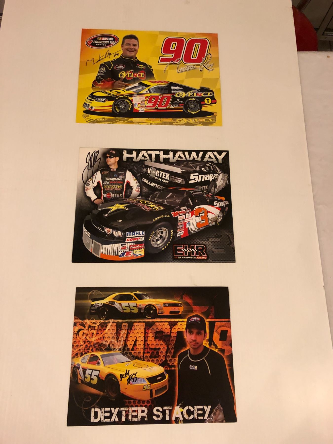 Group of 3 NASCAR racers signed photo cards - Dexter Stacey/ Jason Hathaway & Martin Roy - approx. 9in x 11in