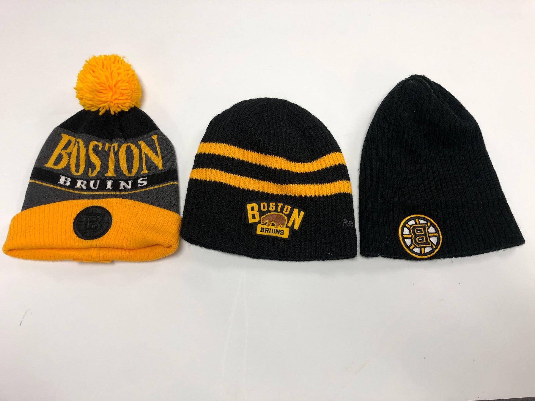 Group of 3 assorted Boston Bruins beanie caps
