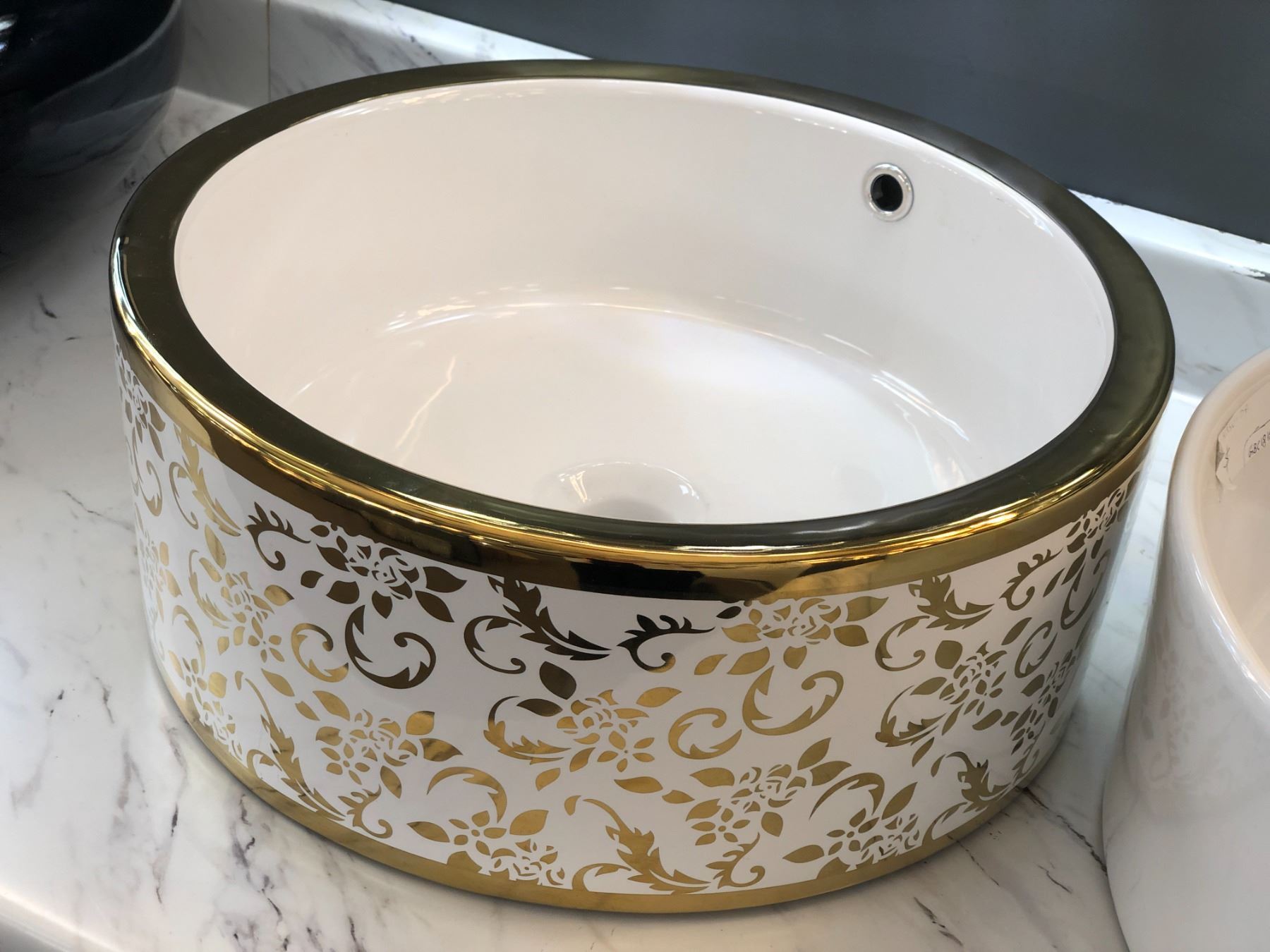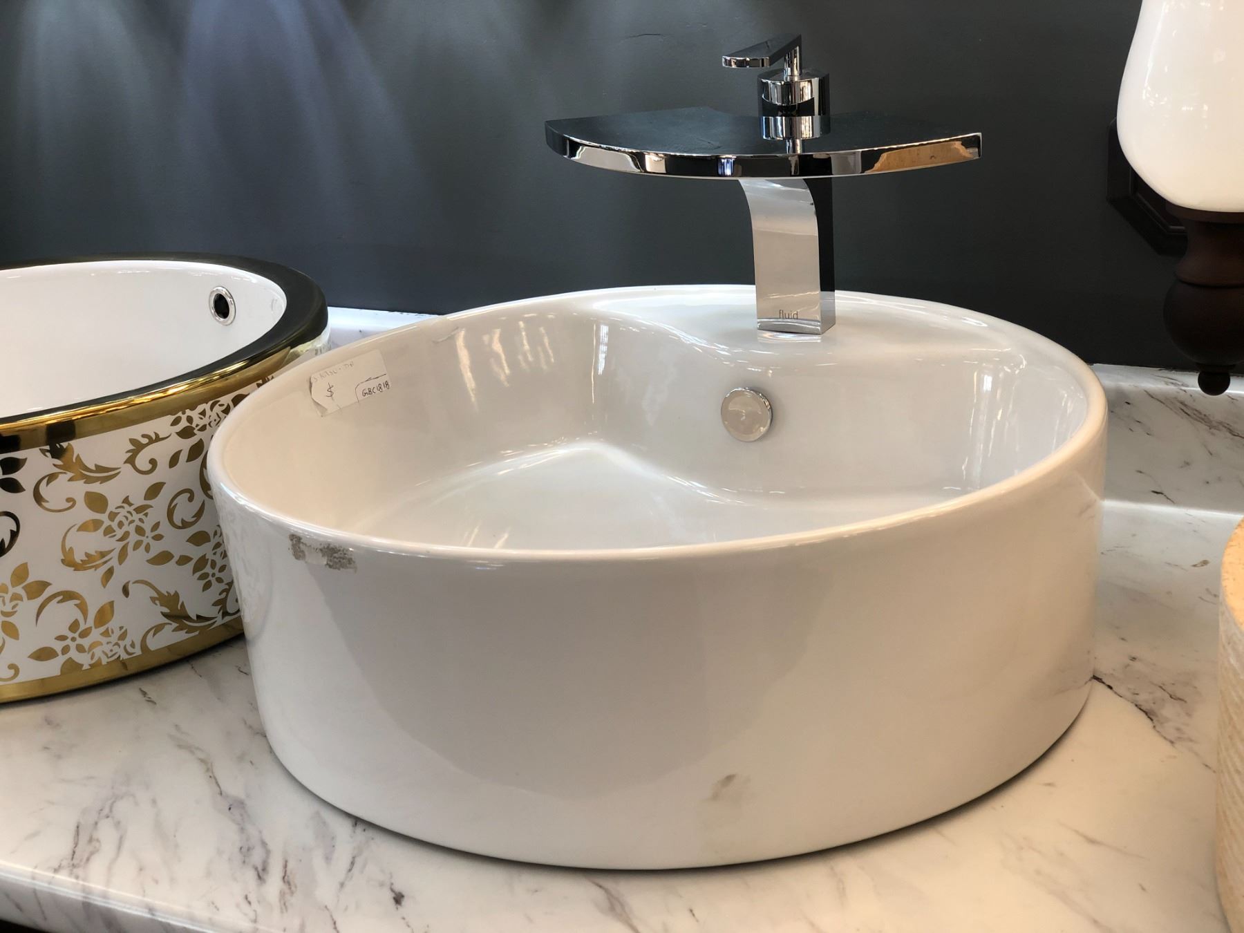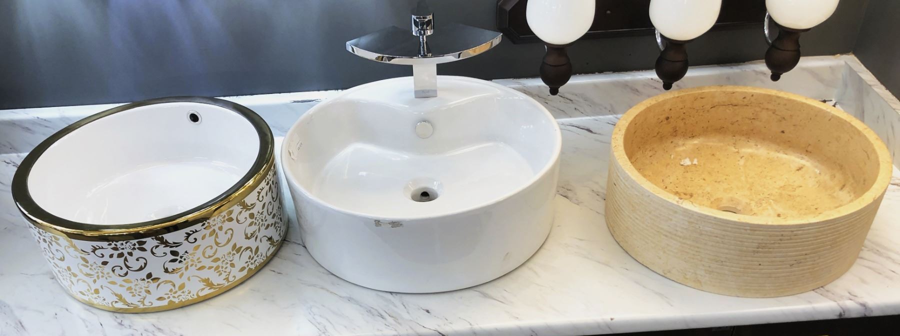 Group of 3 assorted ceramic decorative sinks/bowls - 1 w/faucet