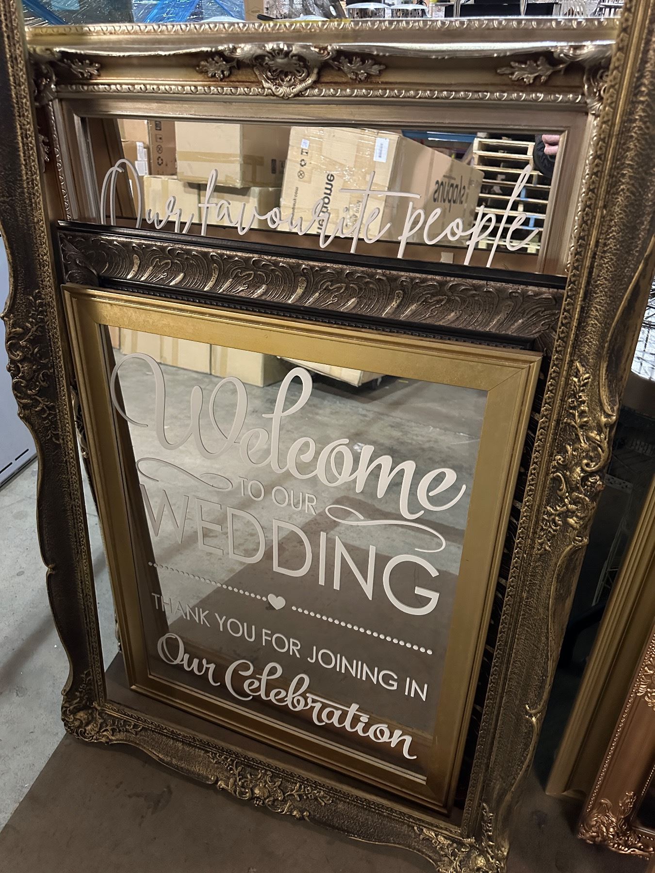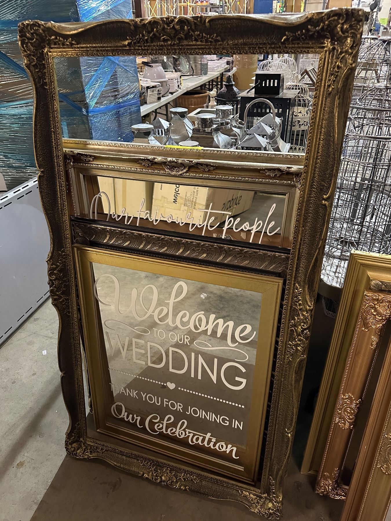 Group of 3 assorted framed decorative wall mirrors w/ 1 frame without mirror