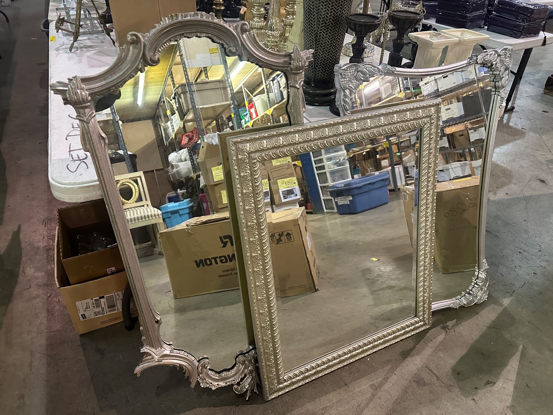 Group of 3 assorted framed decorative wall mirrors