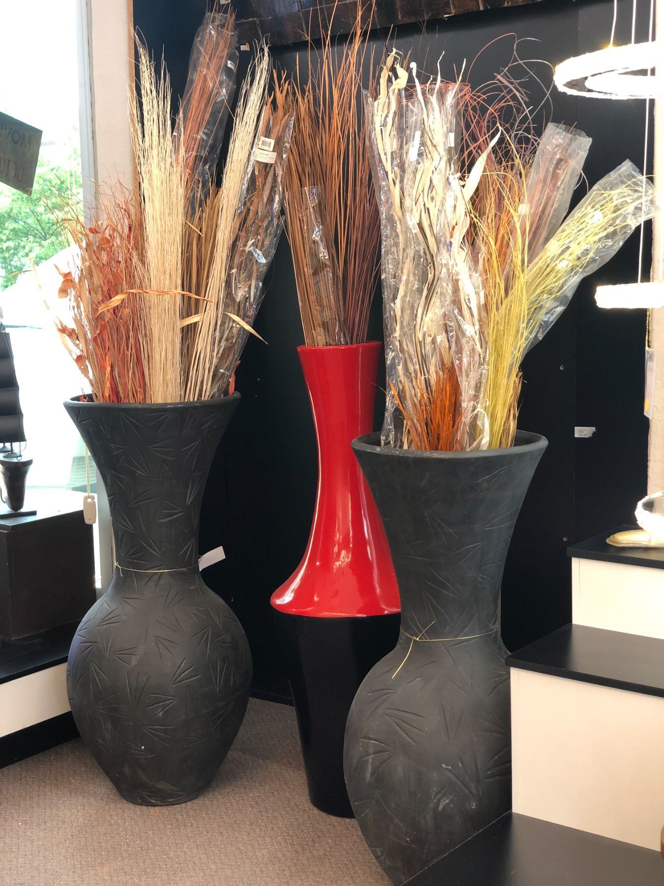 Group of 3 assorted large vases w/decorative artificial plants - approx. 40  vase & 45 1/2  red vase