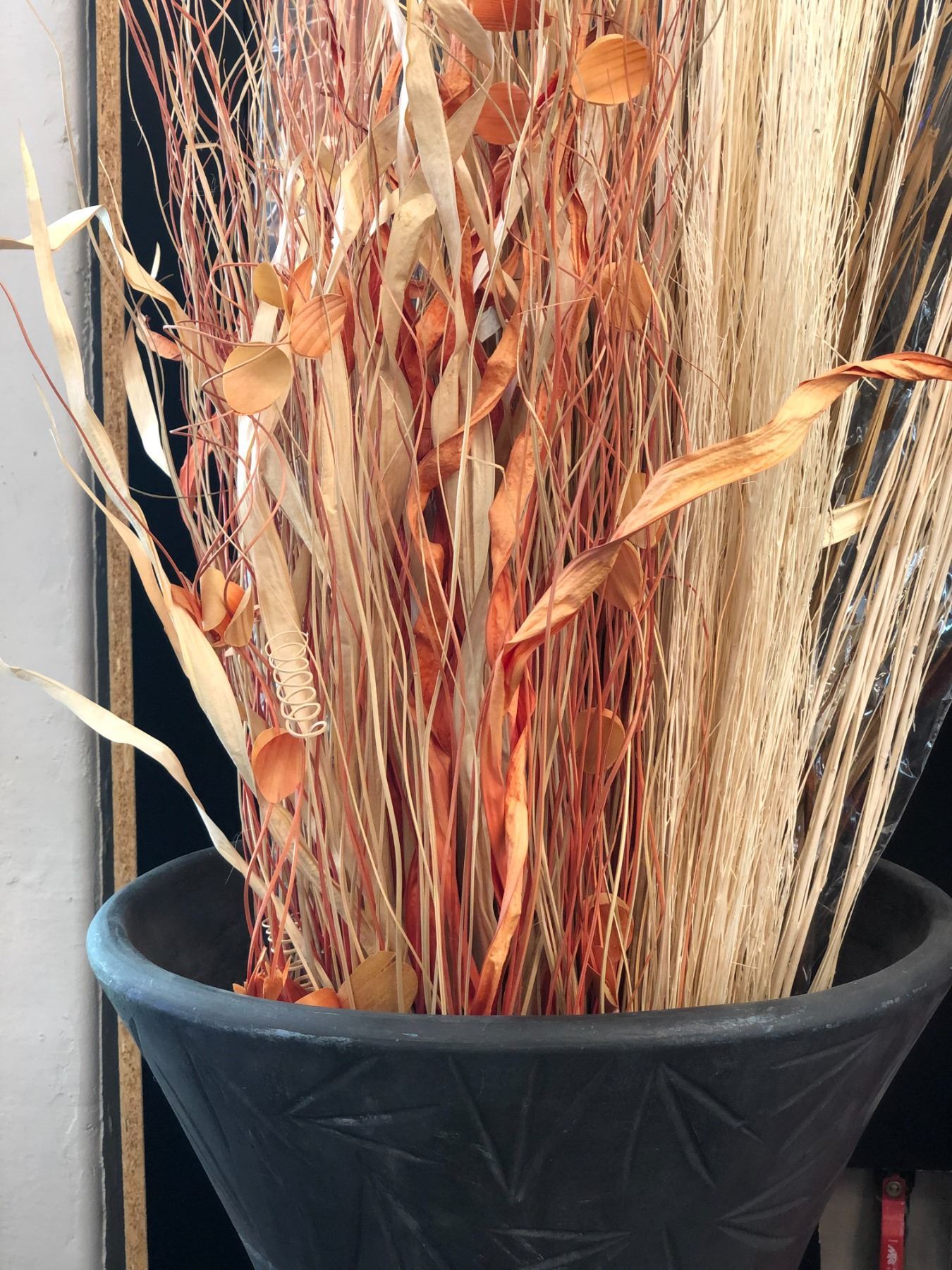 Group of 3 assorted large vases w/decorative artificial plants - approx. 40" vase & 45 1/2" red vase H