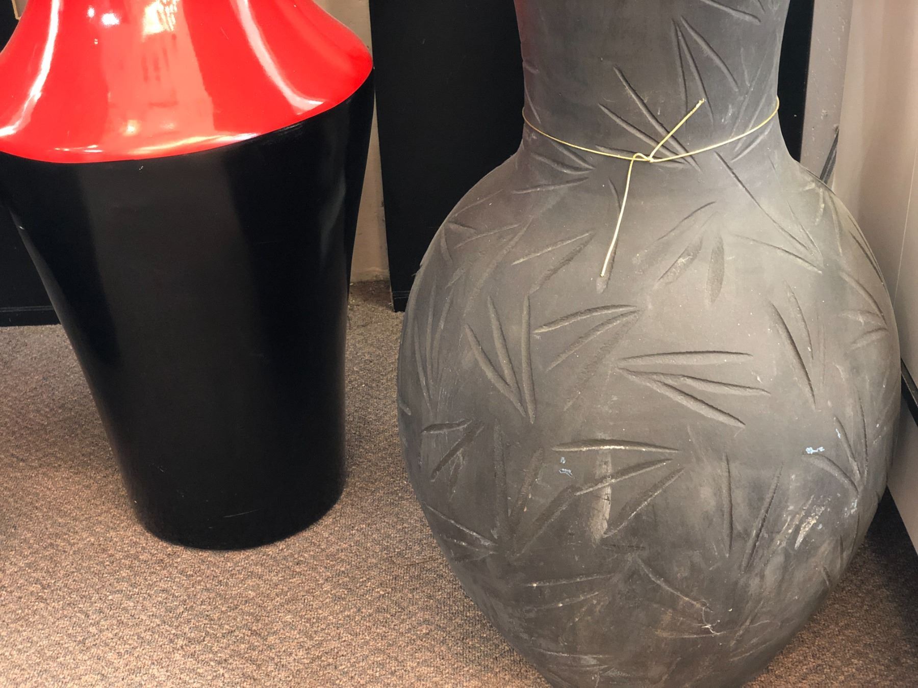 Group of 3 assorted large vases w/decorative artificial plants - approx. 40" vase & 45 1/2" red vase