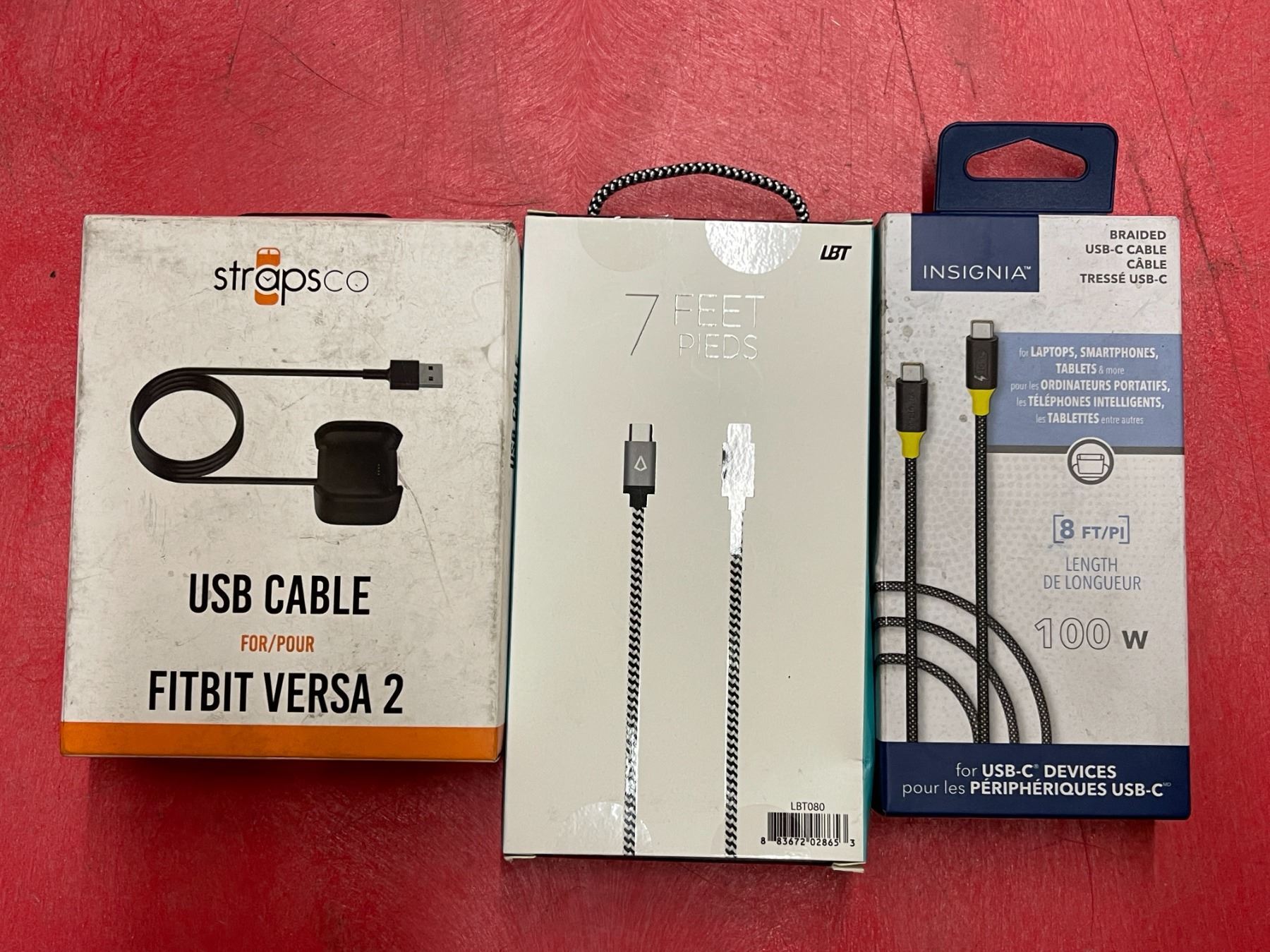 Group of 3 assorted phone cables - Insignia USB-C cable/ LBT 7ft USB-C to Lightning etc.