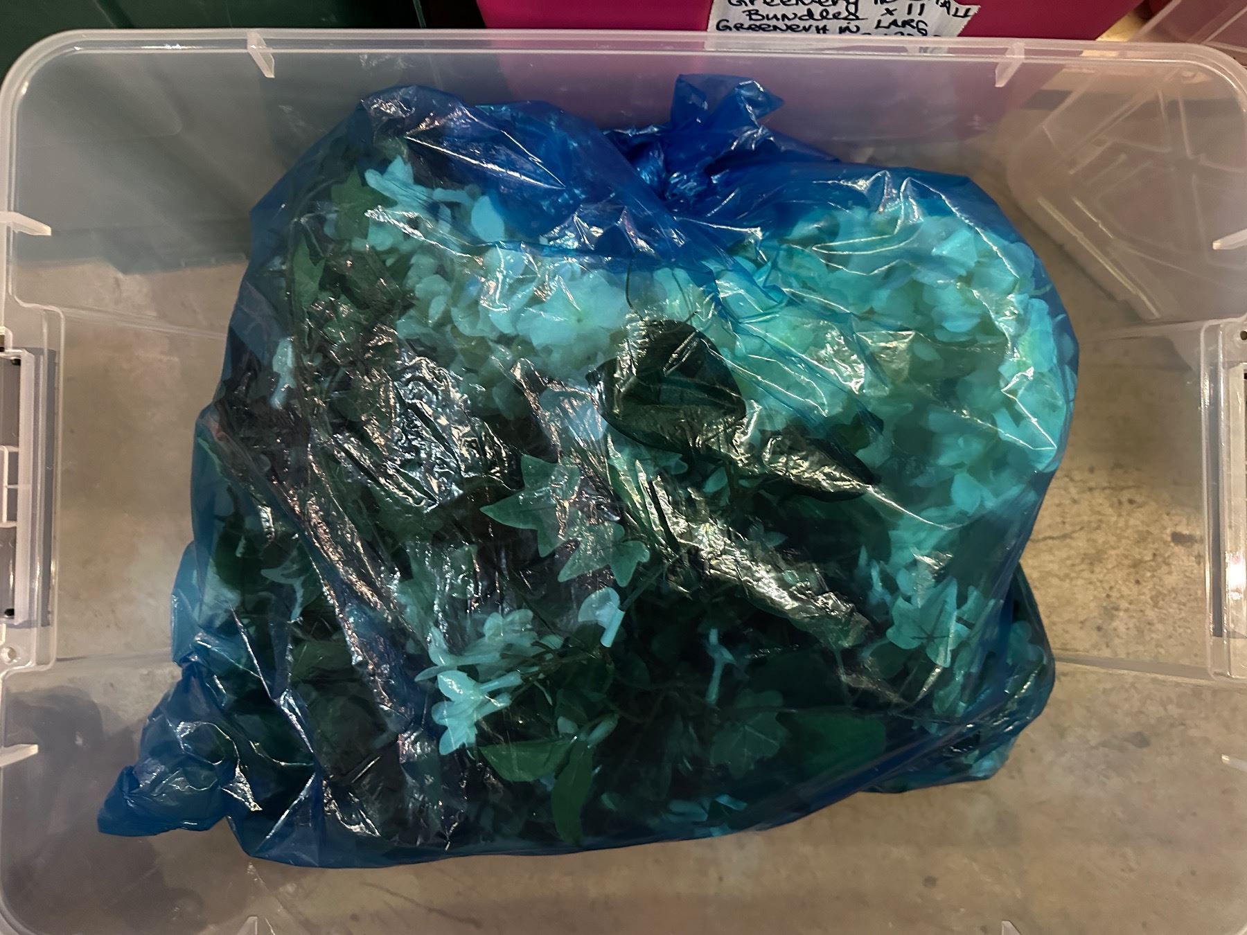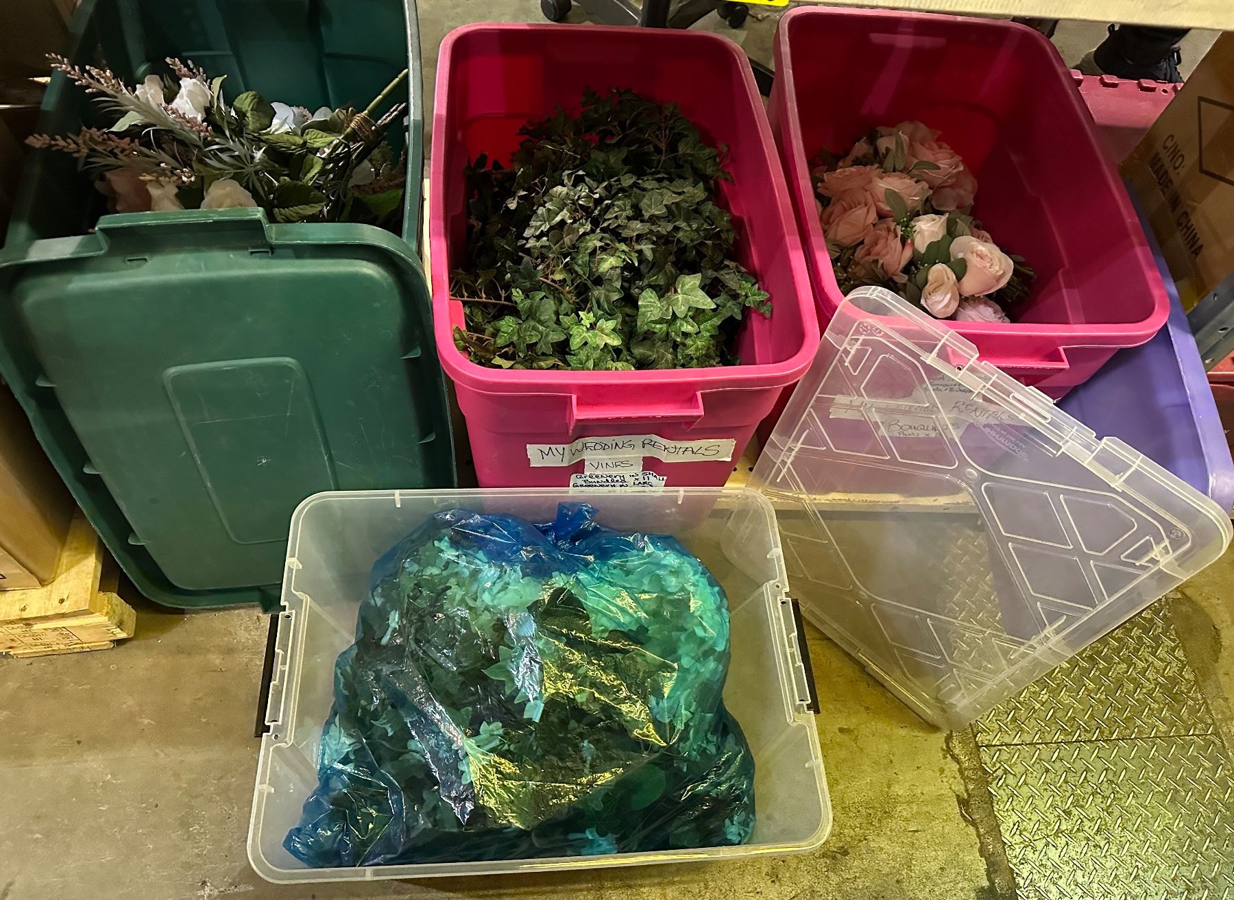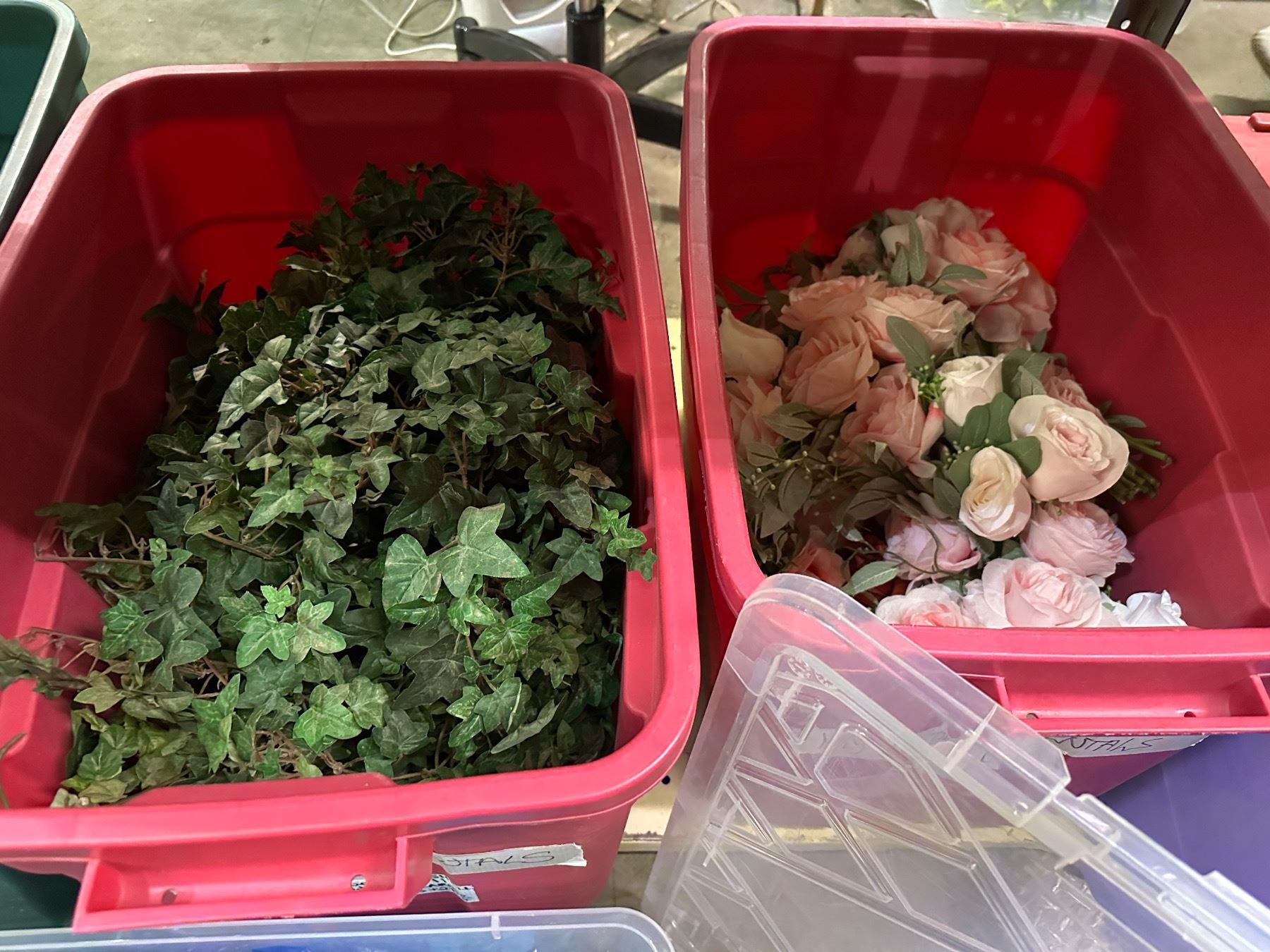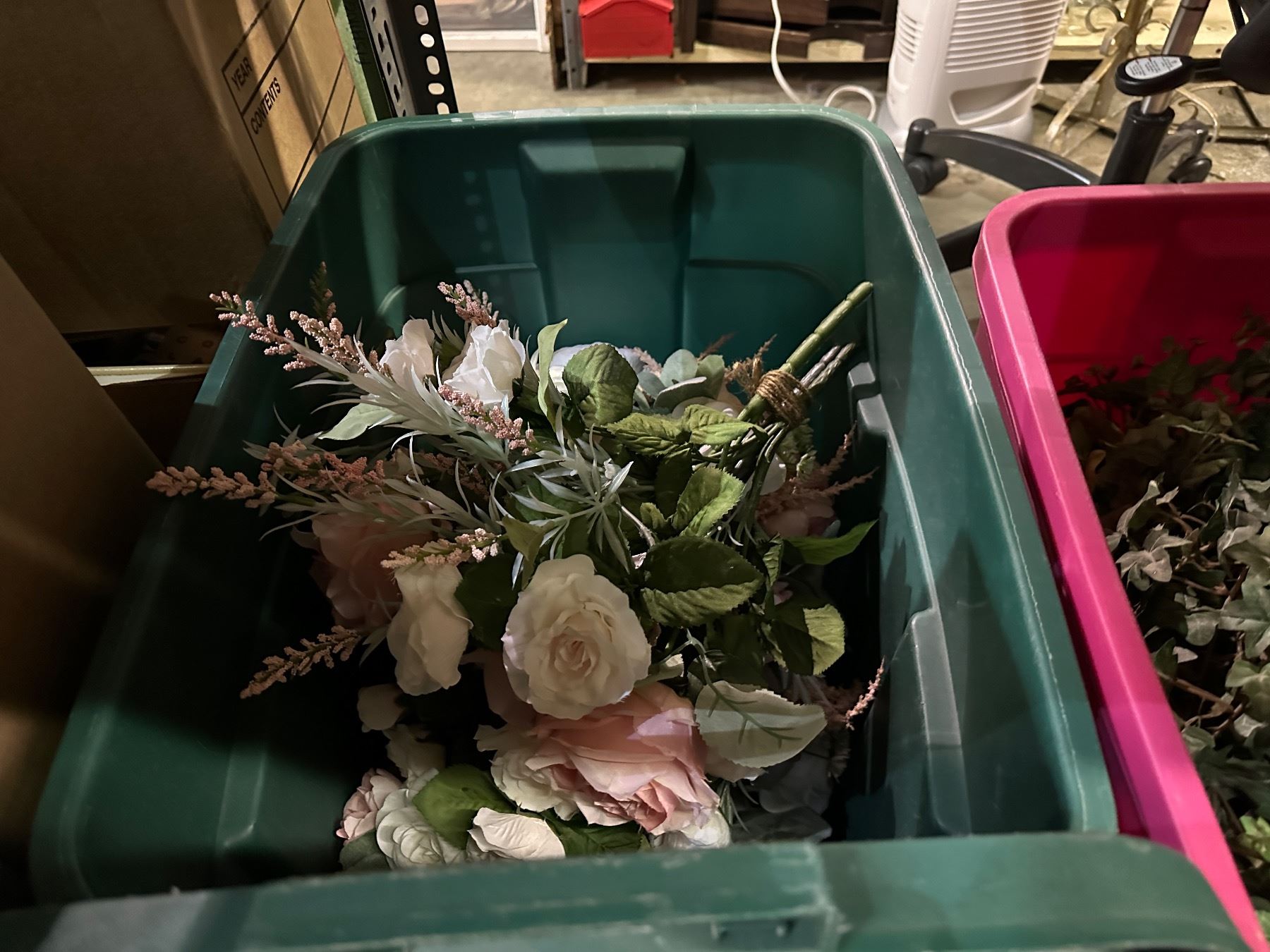 Group of 3 bins of artificial flowers