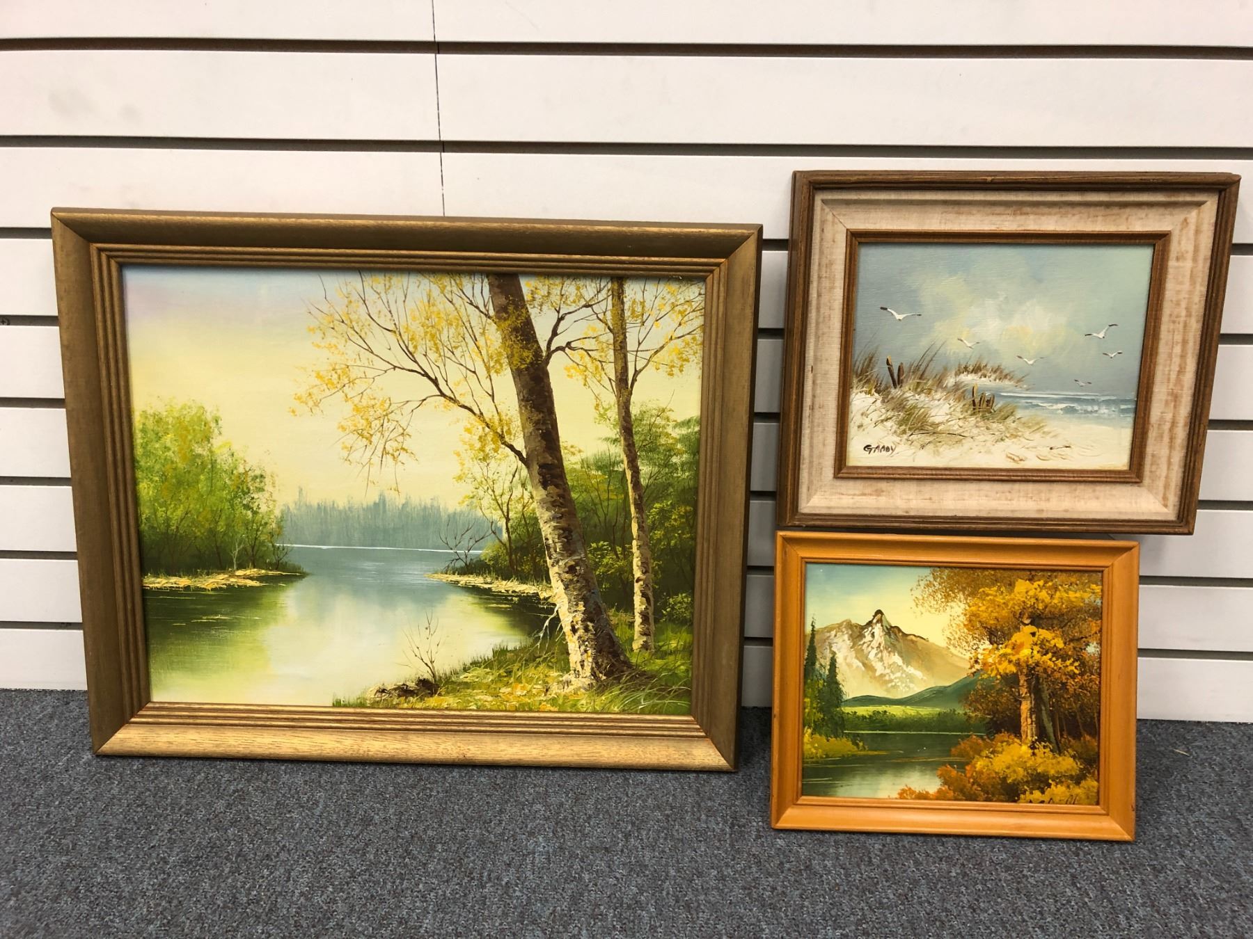 Group of 3 framed original paintings - 22 1/2in x 19in/ 14in x 12in/ 11 1/2in x 9 1/2in
