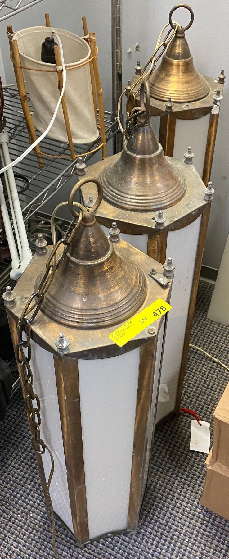 Group of 3 lighting fixtures - brass & glass (approx. 35in H)