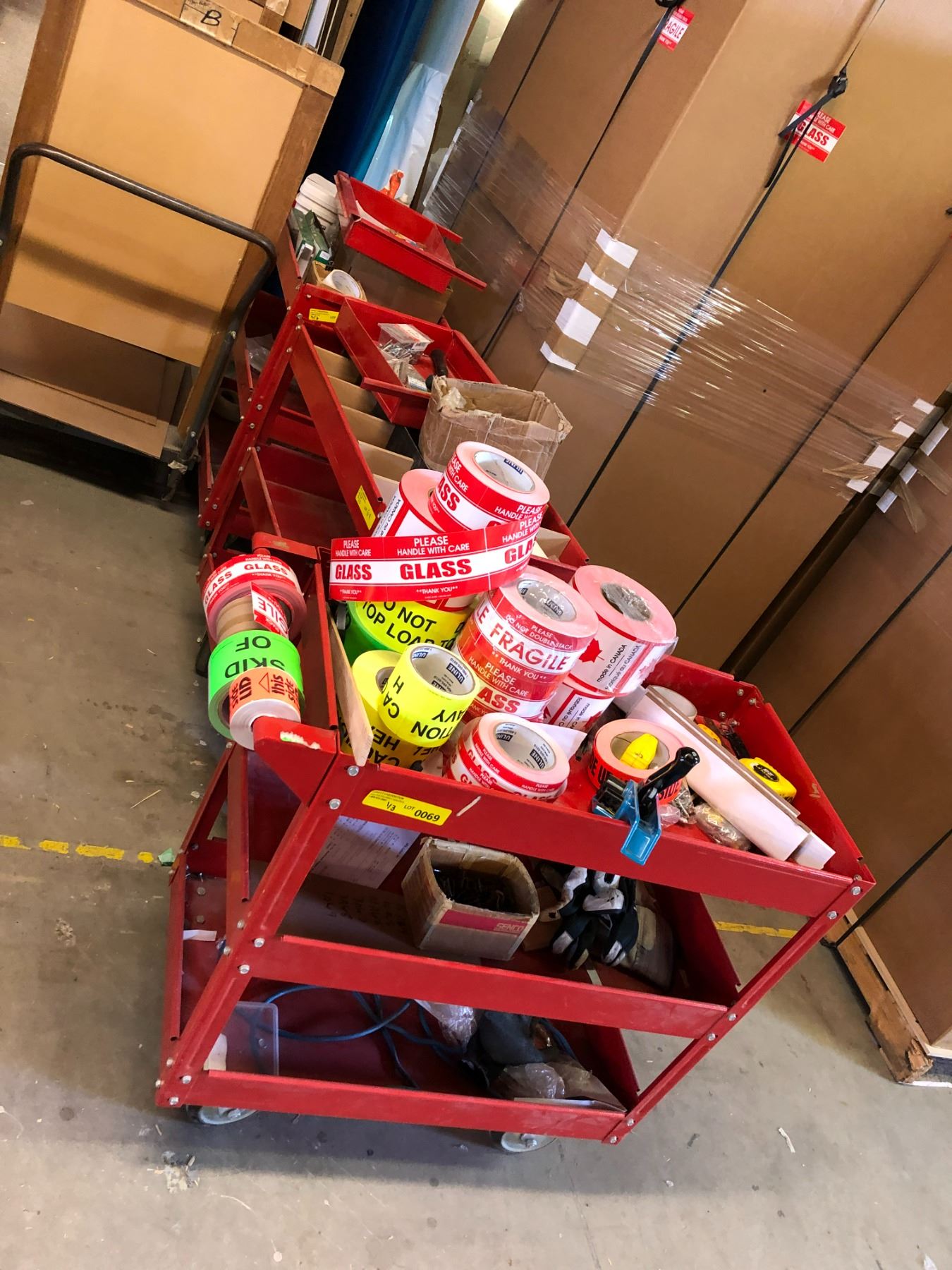 Group of 3 red rolling carts