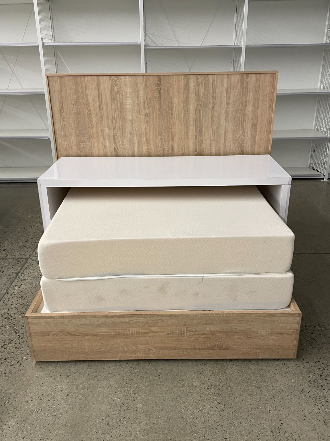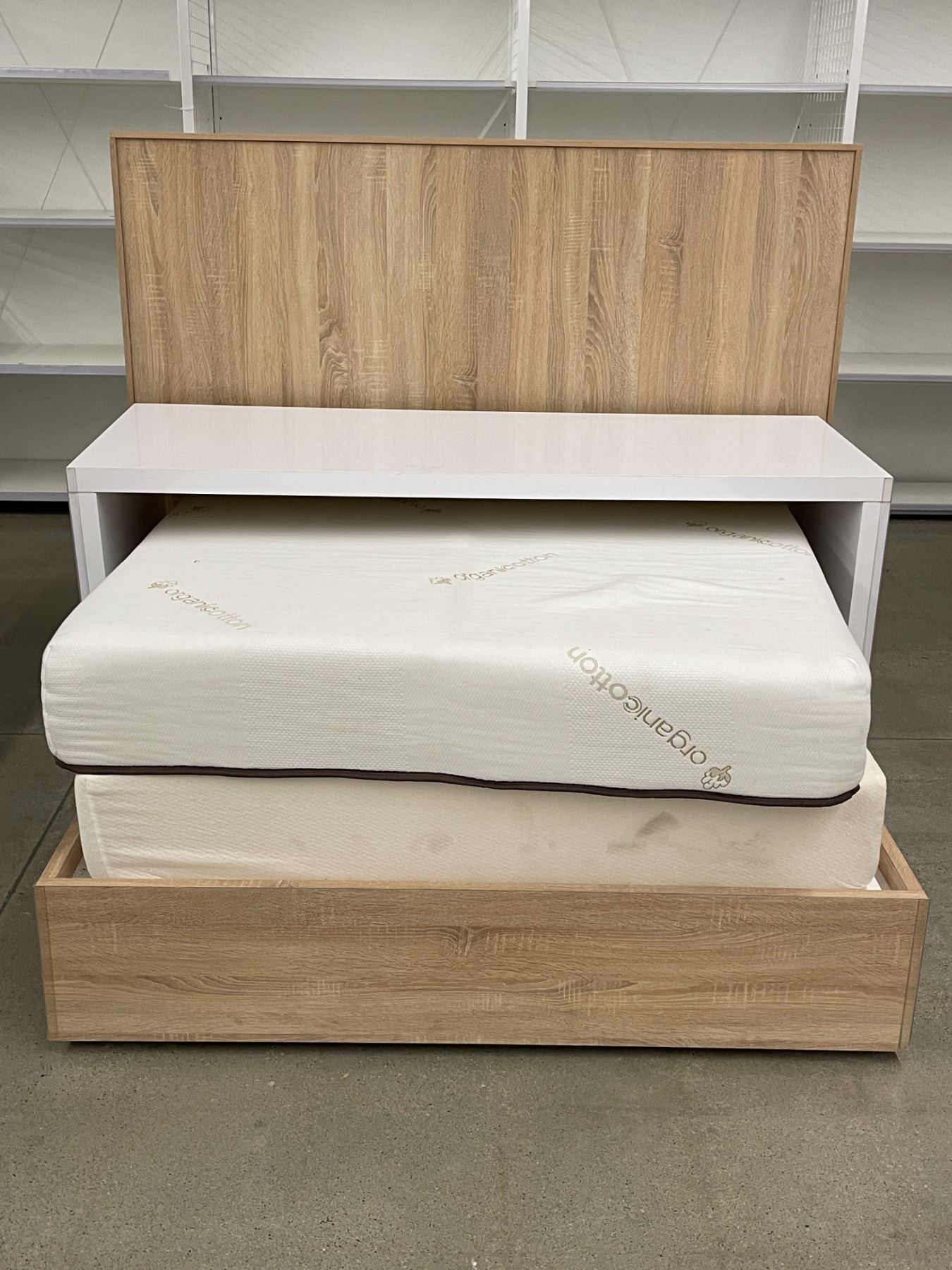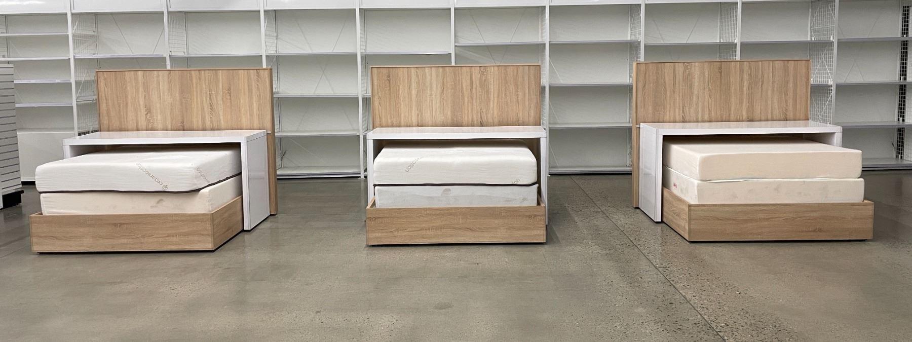 Group of 3 retail display mattresses (approx. 67in W 76in D 58in H) BIDDERS ARE RESPONSIBLE FOR ALL COSTS ASSOCIATED WITH PICKUP OF THEIR LOTS INCLUDING BUT NOT LIMITED TO RENTAL OF EQUIPMENT, FORKLIFTS, LABOUR, TRUCKING, TOOLS ETC.