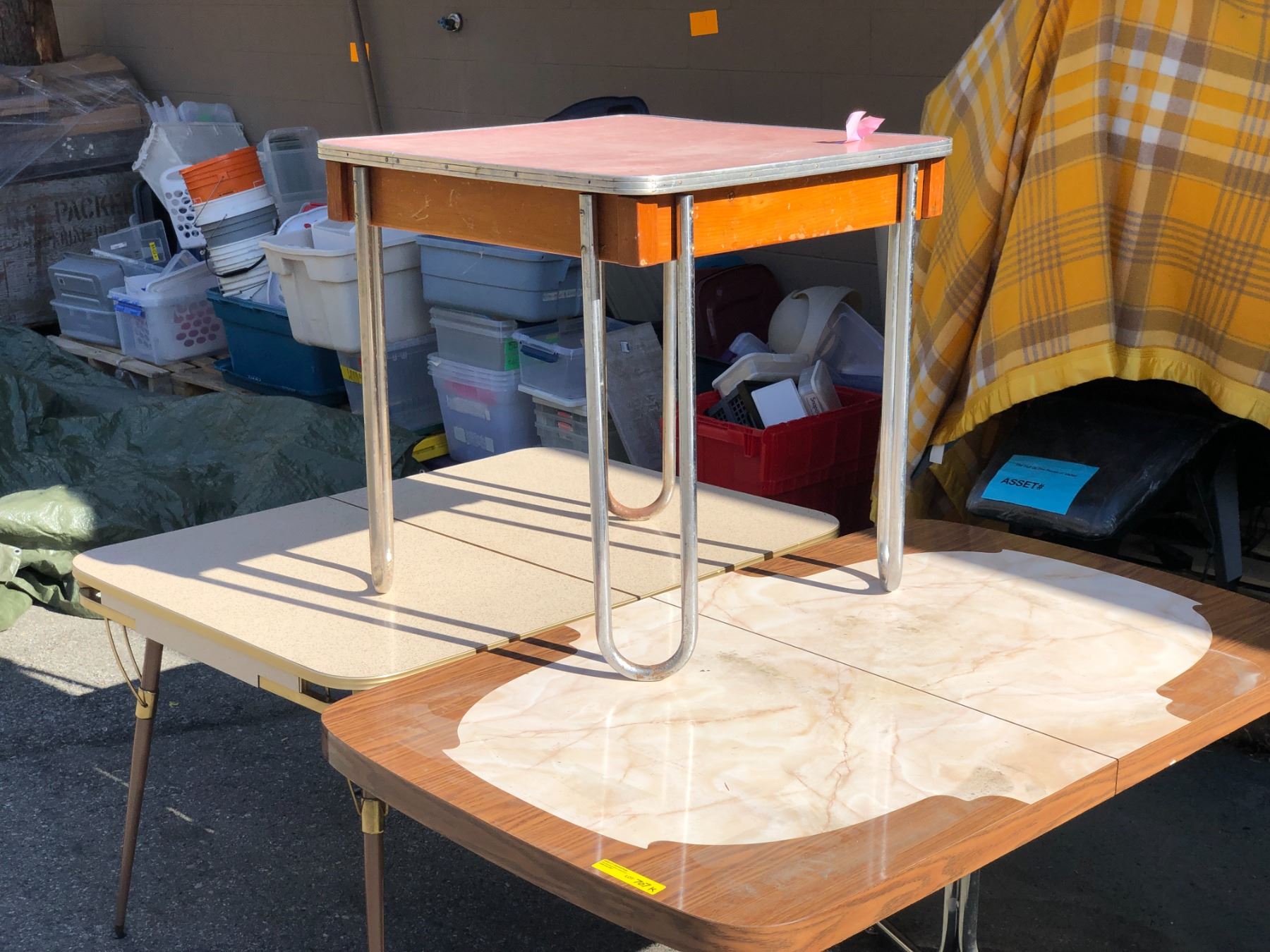 Group of 3 retro 1960s chrome & formica tables (From the thriller show)