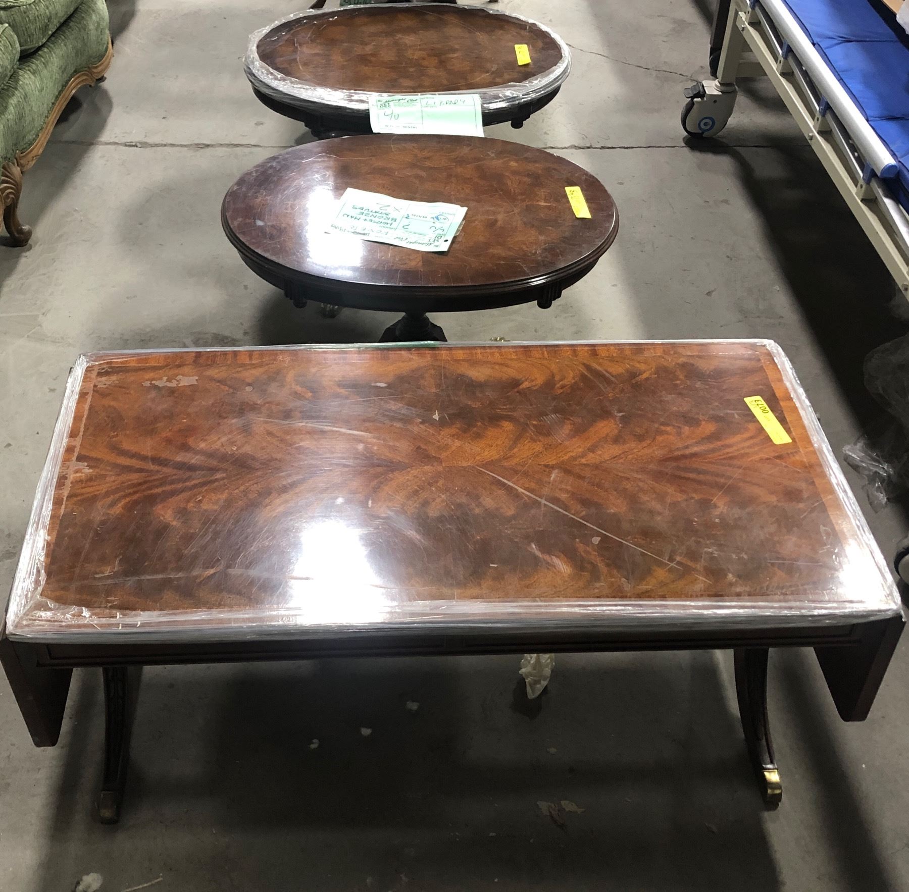 Group of 3 tables - includes 2 side tables (approx 27" x 20" x 19 1/2" height) & extendable dining table (approx 43" x 21 1/2" x 17 1/2" height)
