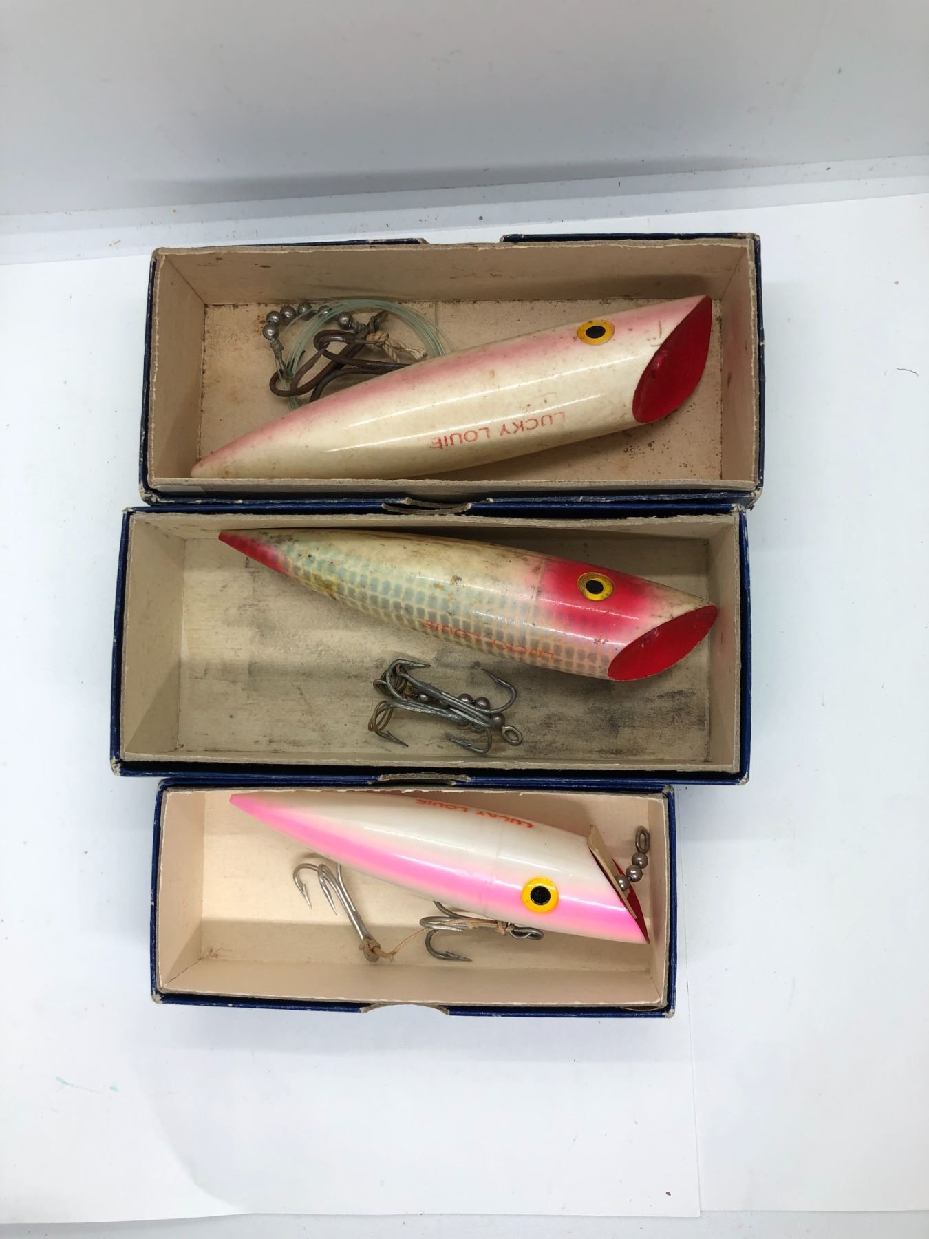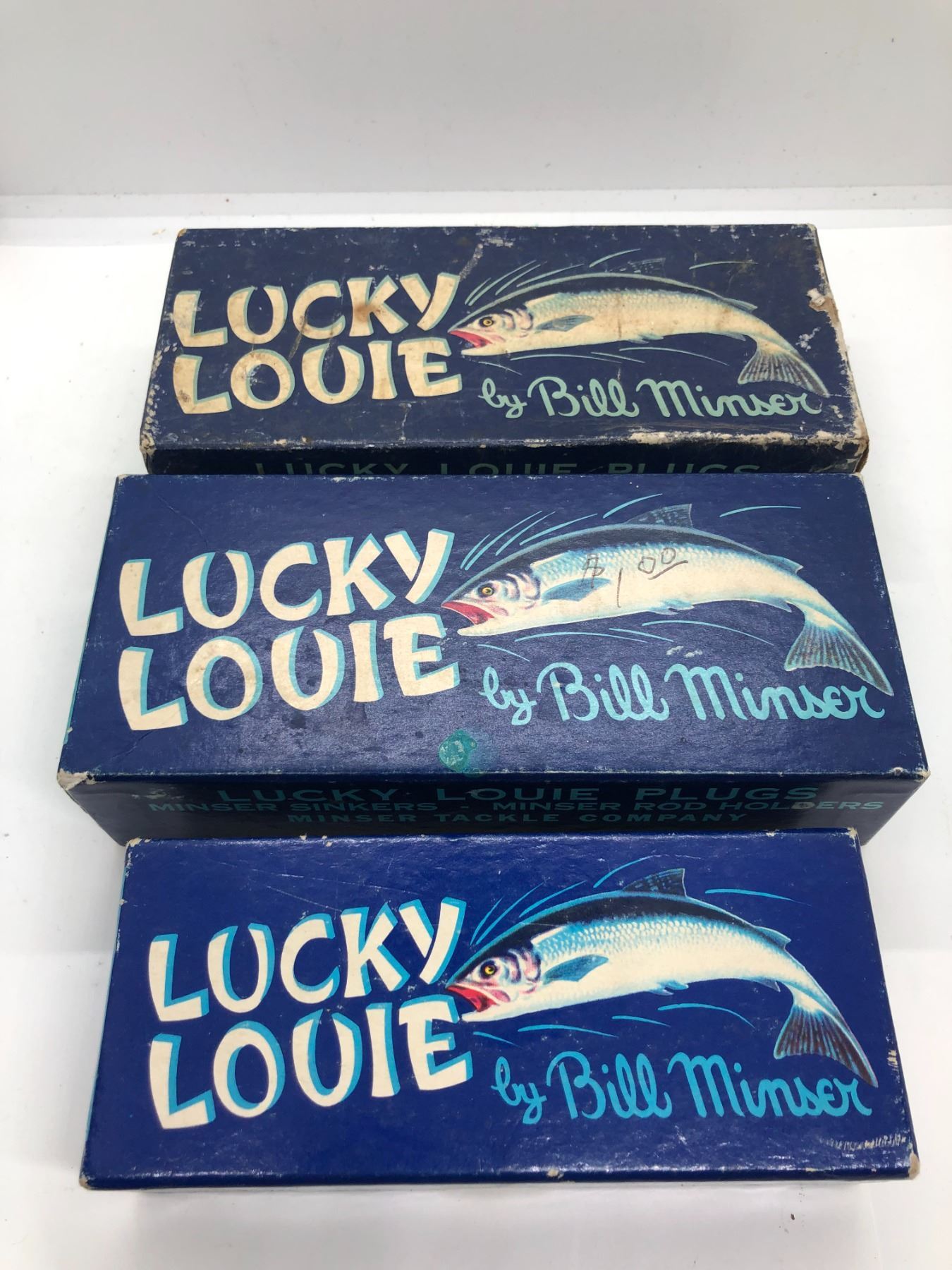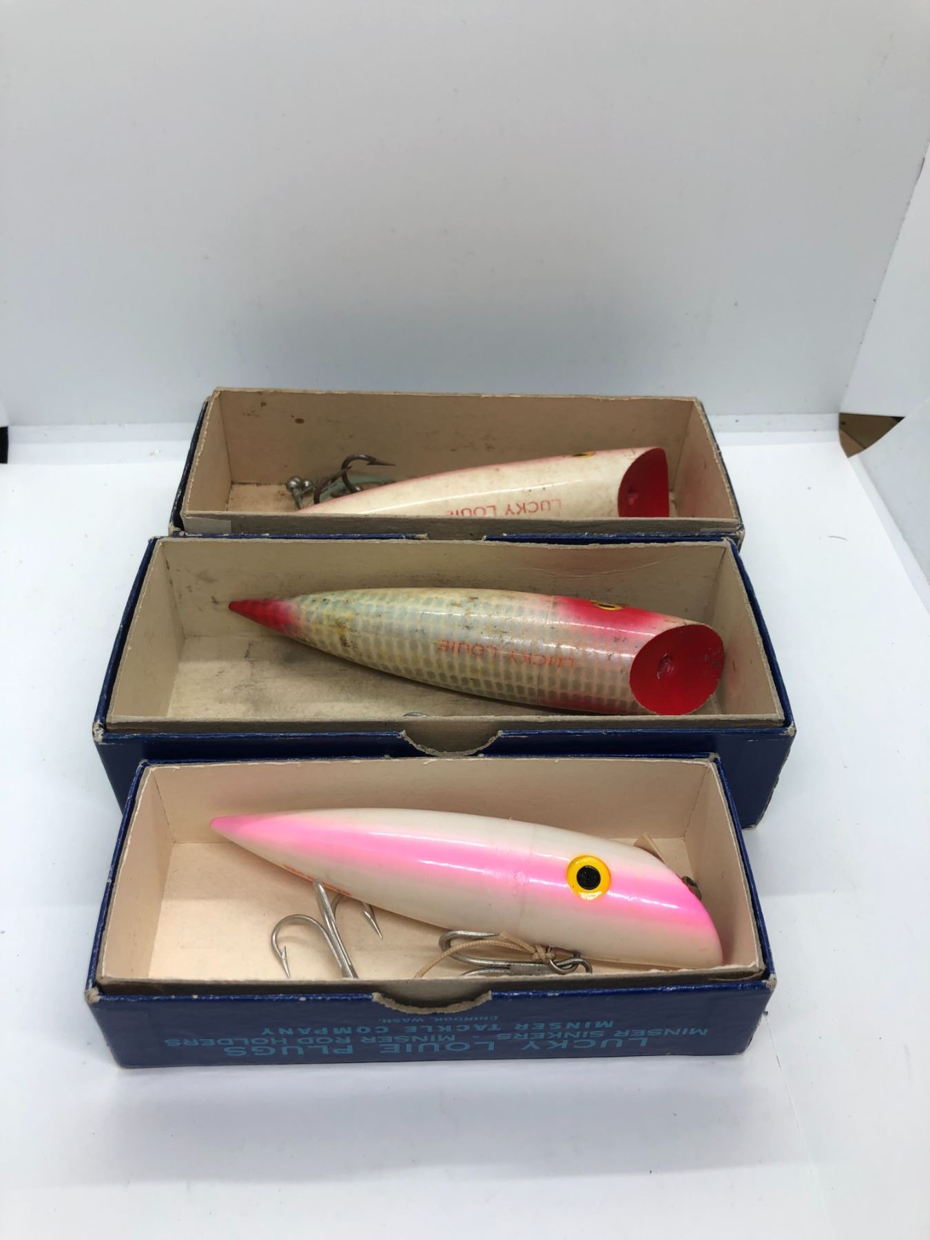 Group of 3 vintage Lucky Louie by Bill Minser assorted salmon plugs w/ original boxes