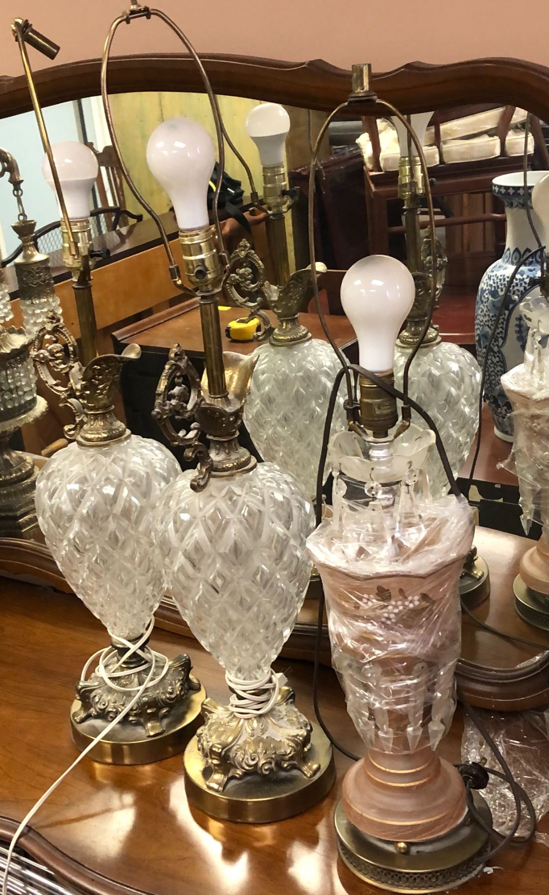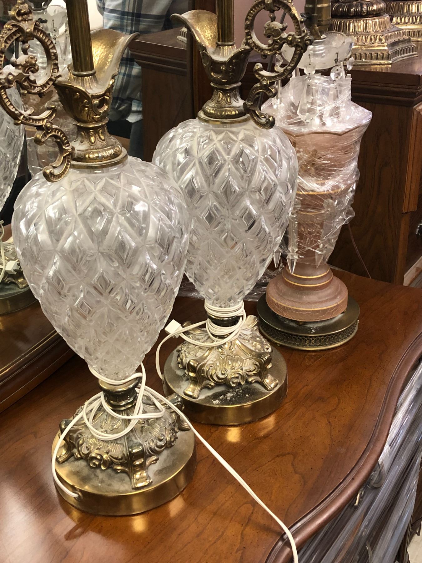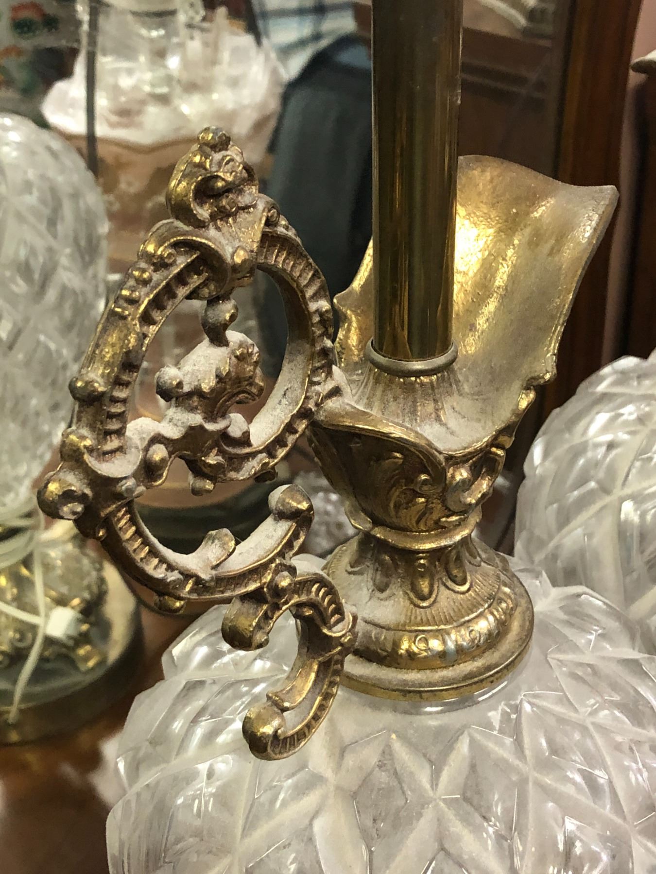 Group of 3 vintage brass & glass table lamps (without lamp shades)
