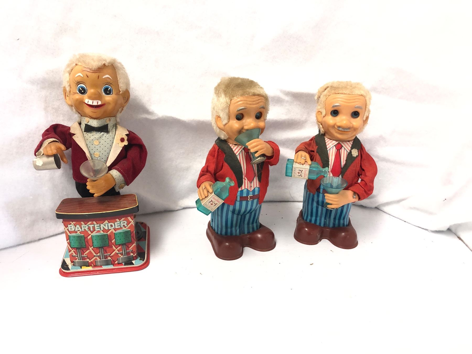 Group of 3 vintage estate 1960's Rosco tin toy bartender bar decor