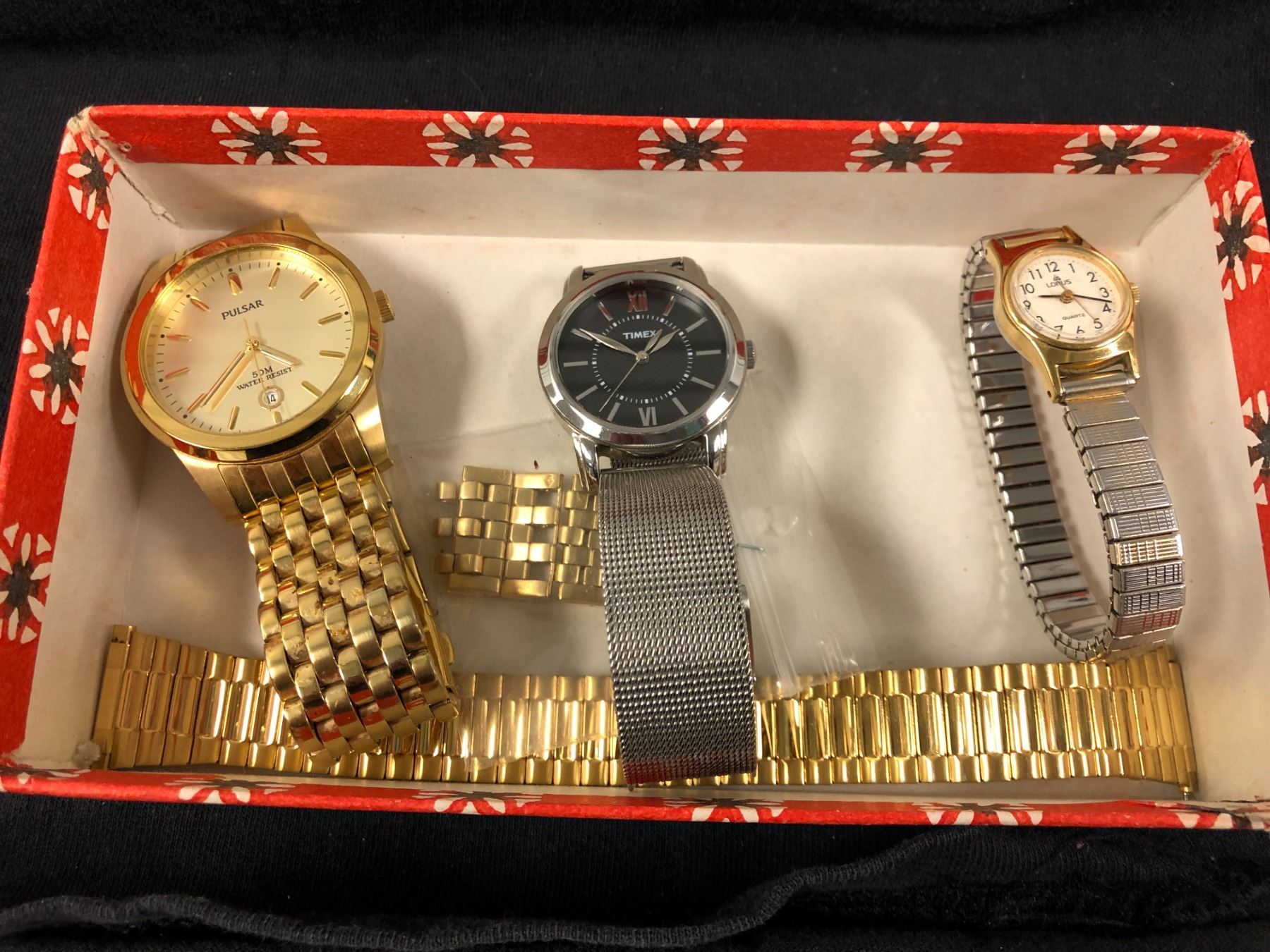 Group of 3 vintage watches - men's Pulsar/ men's Timex & ladies' Lorus