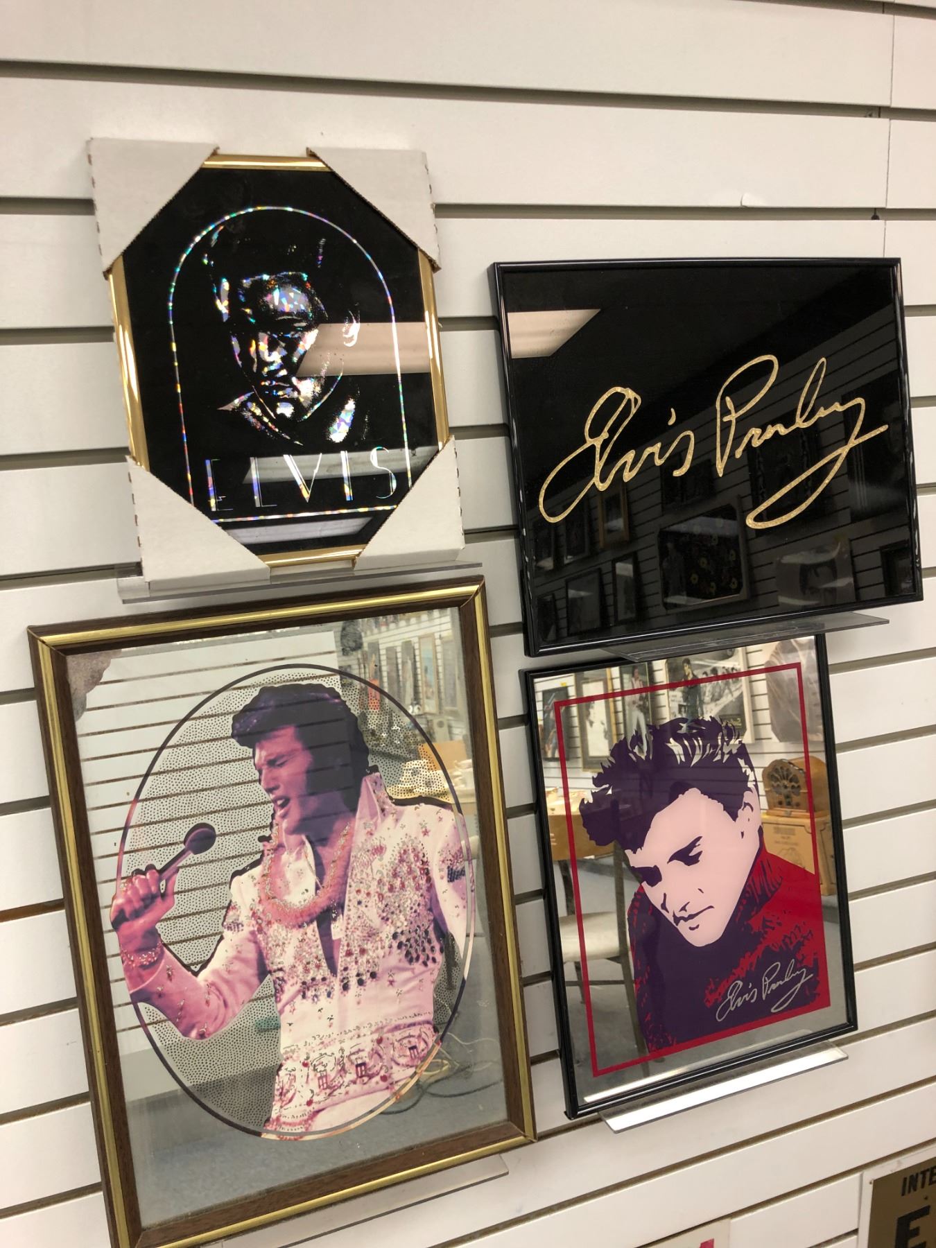 Group of 4 Elvis Presley framed prints on glass & mirror collectible decorative wall hangings - assorted sizes