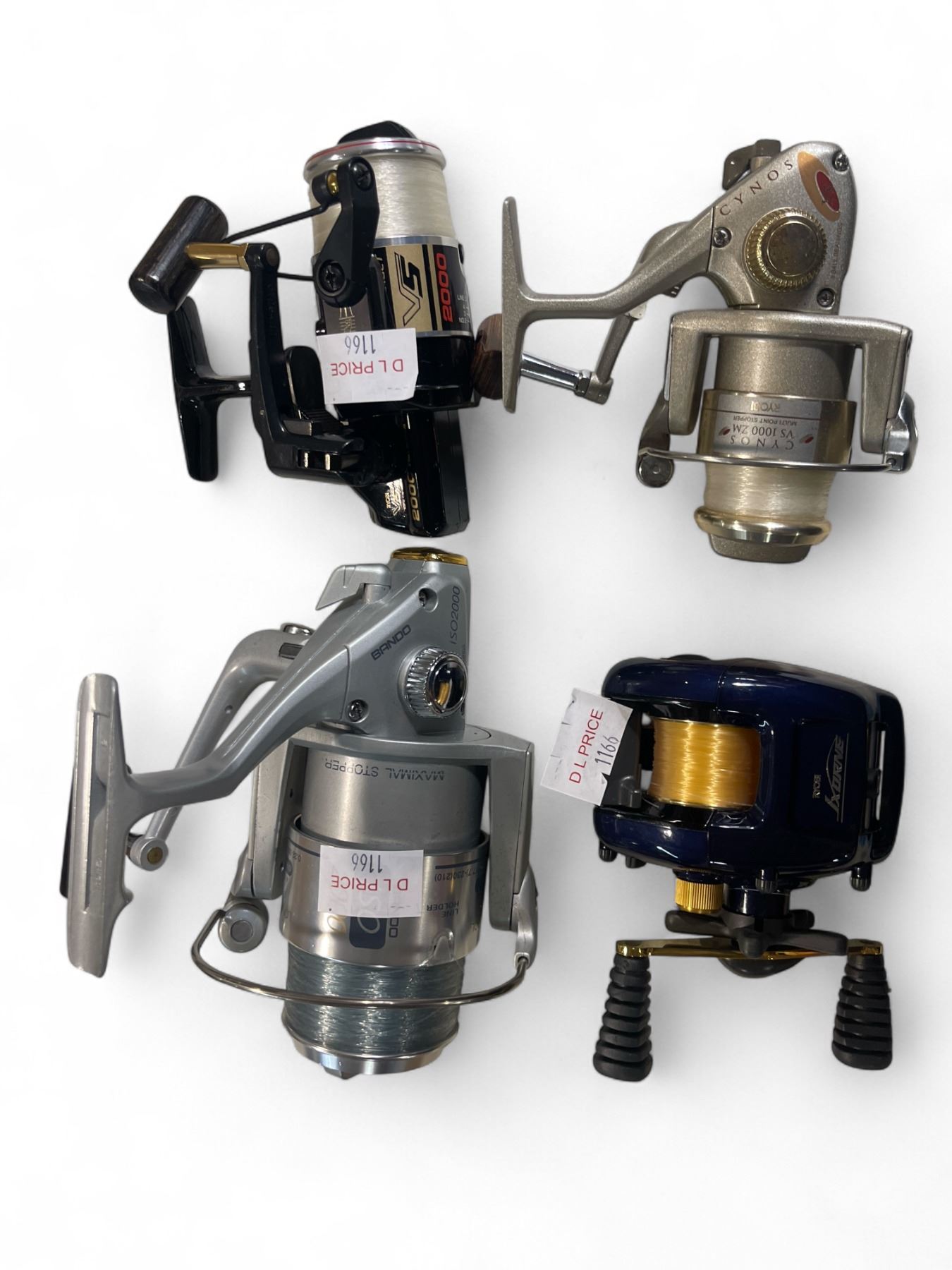 Group of 4 Fishing Reels - includes Ixorne Ryobi/Cynos/V5 2000 & Bando ISO 2001