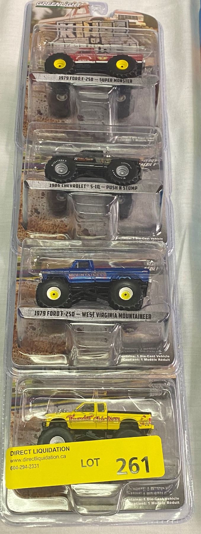 Group of 4 Greenlight Collectibles King of Crunch monster trucks
