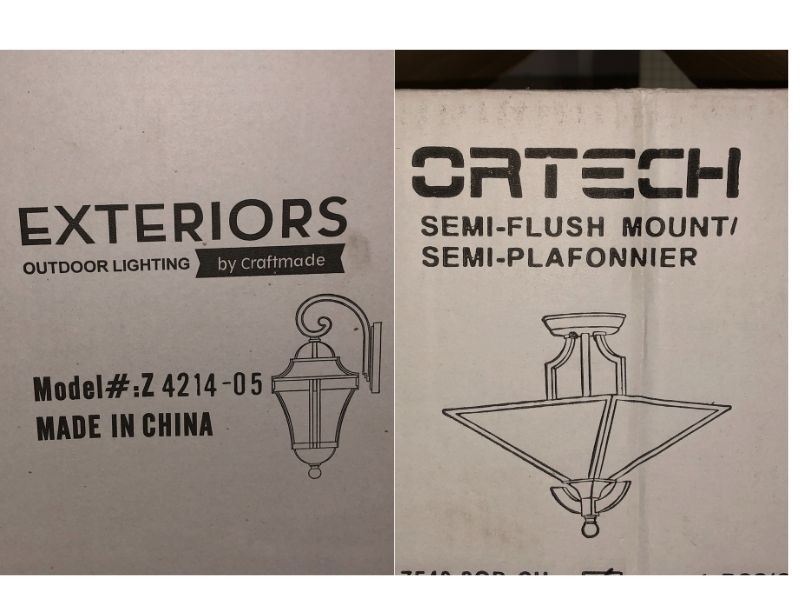 Group of 4 NEW outdoor decorative lights - includes 2 single Ortech semi-flush mount decorative lights etc (new in box)
