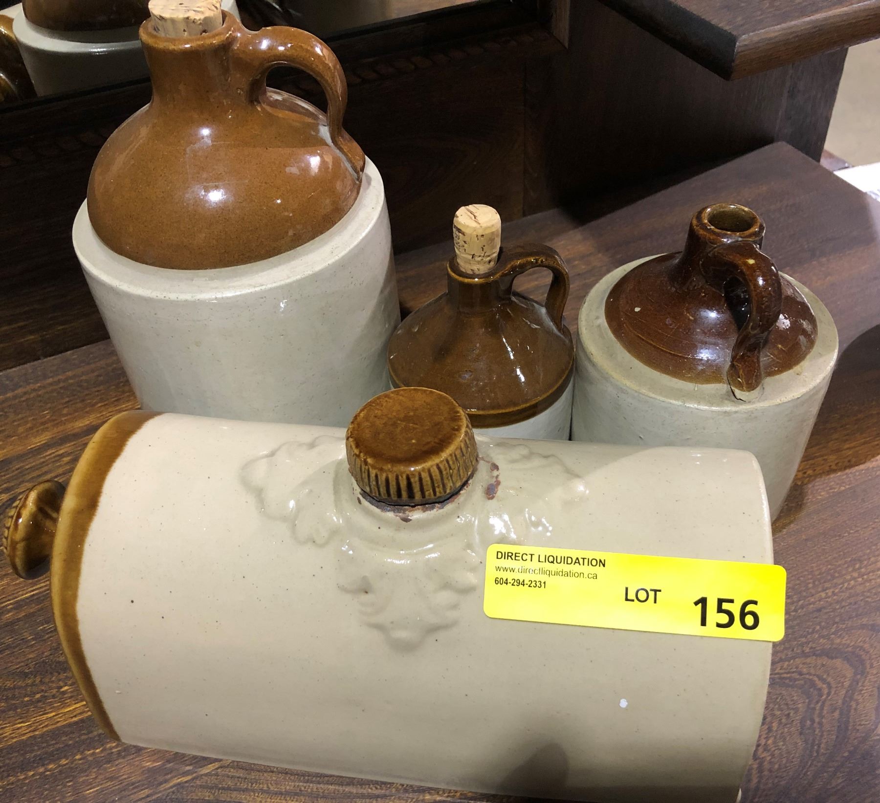 Group of 4 antique stoneware pcs. - 3 liquor jugs & 1 bedwarmer from the love show