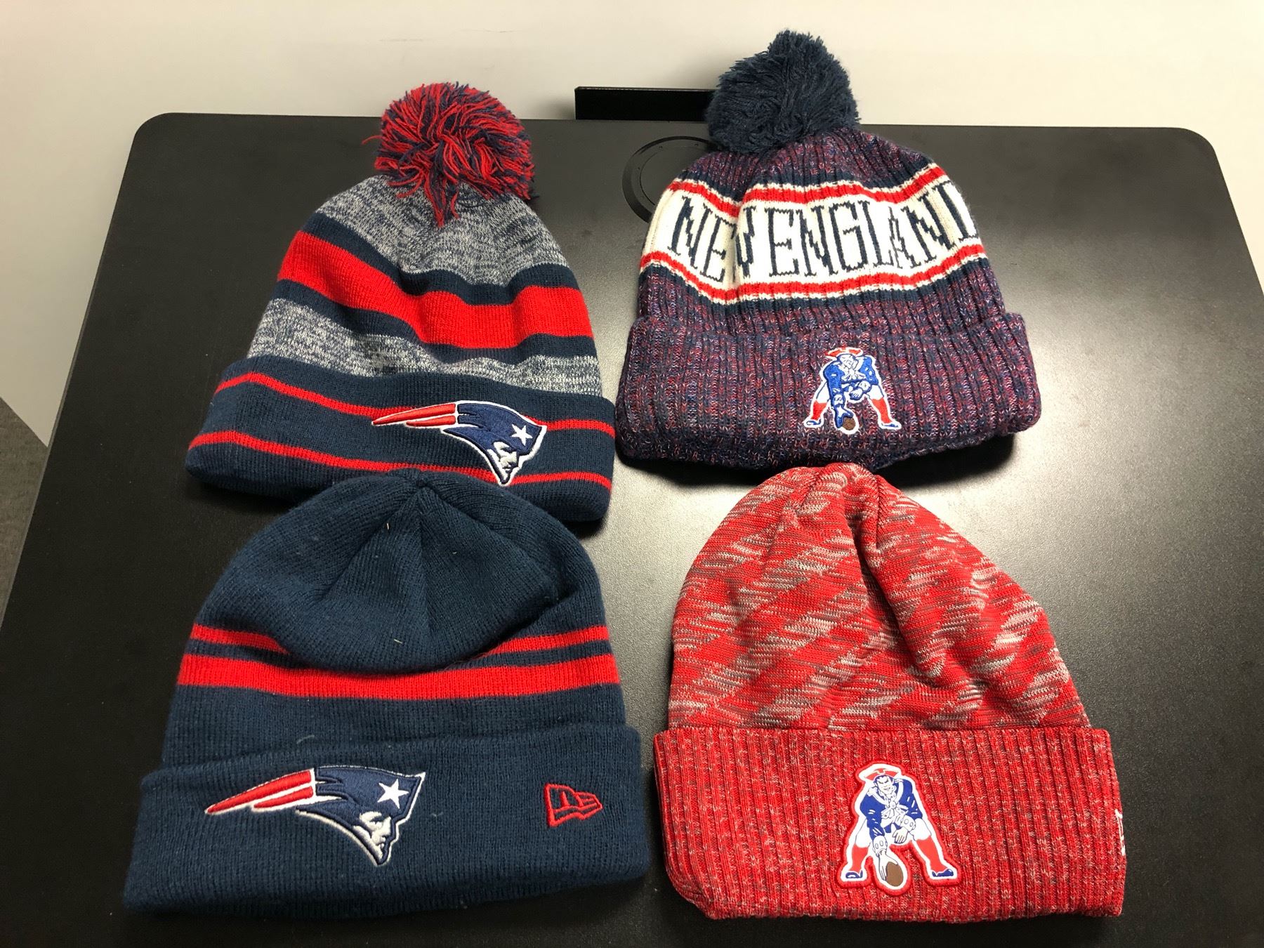Group of 4 assorted New Era NFL New England Patriots beanie caps